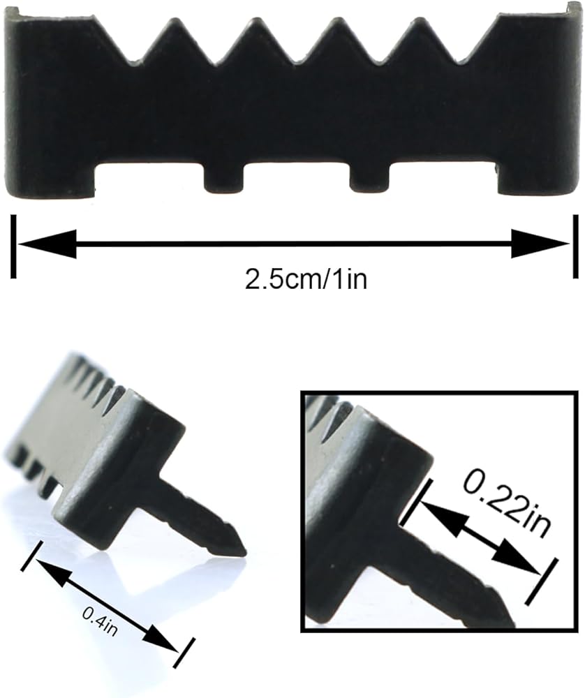 This product is a nailless sawtooth hanger with dimensions of 0.31 inches wide x 0.98 inches long, made of steel with a black electroplated surface. Designed specifically for wooden frames, these hangers can be easily installed without additional hardware. The hardened surface treatment ensures that the hangers will not bend or deform during installation, allowing you to confidently secure them in place with a hammer. The compact and convenient size allows these sawtooth hangers to be quickly and easily installed on hardwood, providing sturdy support for your decorations.