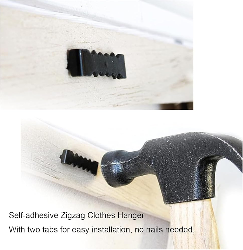 100 قطعة من شماعات الصور على شكل سن المنشار مع مسامير، خطافات صور على شكل سن المنشار، مقاس 0.31 × 0.98 بوصة، خطافات إطار صورة غير ملحومة مزدوجة الجوانب للوحات الزخرفية باللون الأسود
