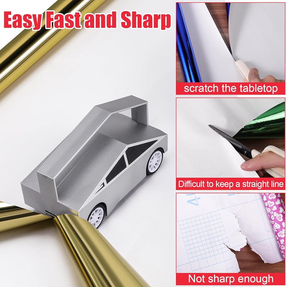 Hidden Blade for Safe and Efficient Cutting: Safety first, style always! Our gift wrap cutter features a hidden blade within the car's base, ensuring that only precision cuts are made without any risk of accidental injuries. This innovative design keeps your hands away from the blade, making it the safest choice for all your gift-wrapping needs