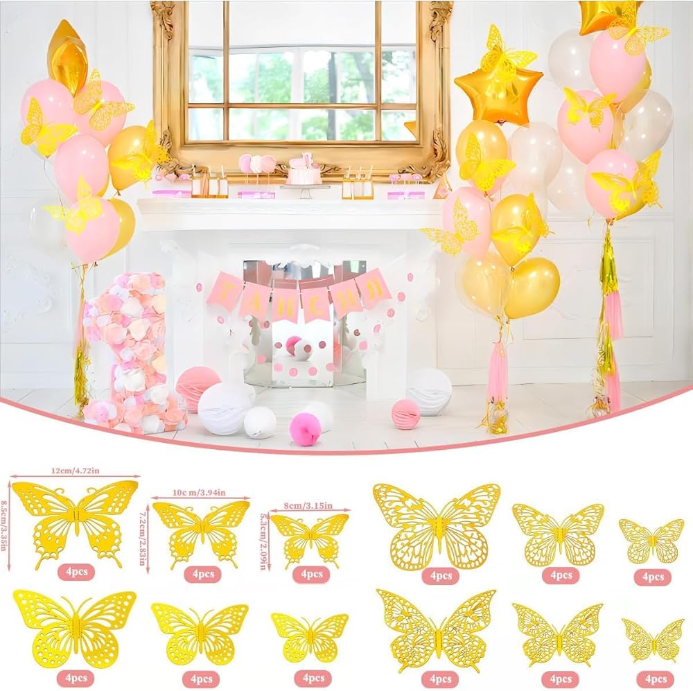 Specification: Material: Paperboard Quantity: 248 Color: as shown Size: As Picture Shows Package includes: 48* Gold Butterfly Wall Decor, 200* Corsage Pins Warm tips: Please allow slight error on size due to manual measurement. Slight color differences may exit, please in kind prevail.