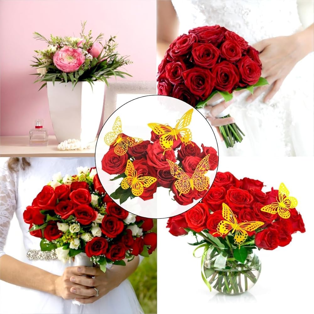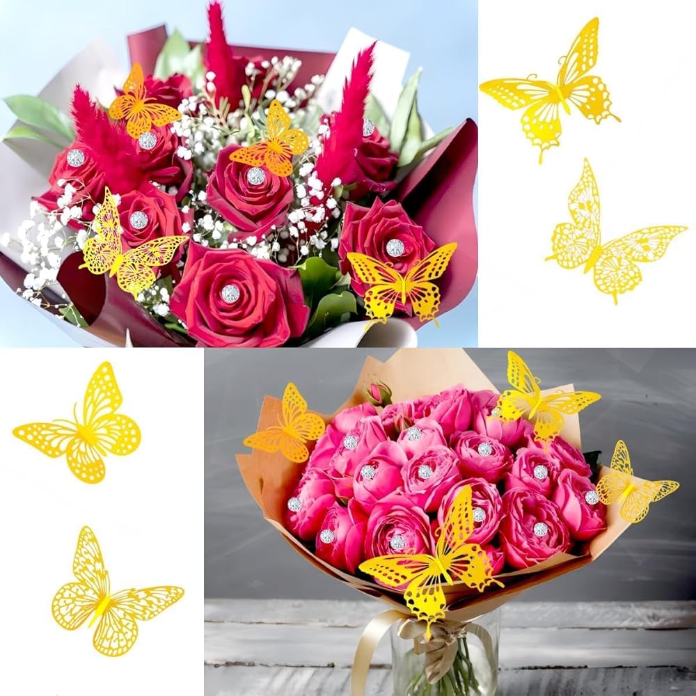 Easy to Use: These 3D gold butterfly stickers come with adhesive dots,so that you can stick them firmly in flowers or other places, and the rhinestone pins are easy to slide into the flower, simple to use