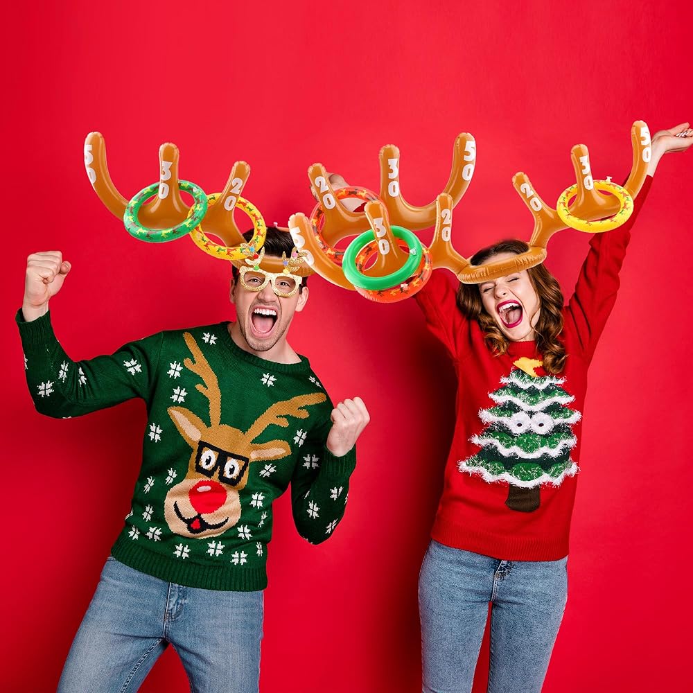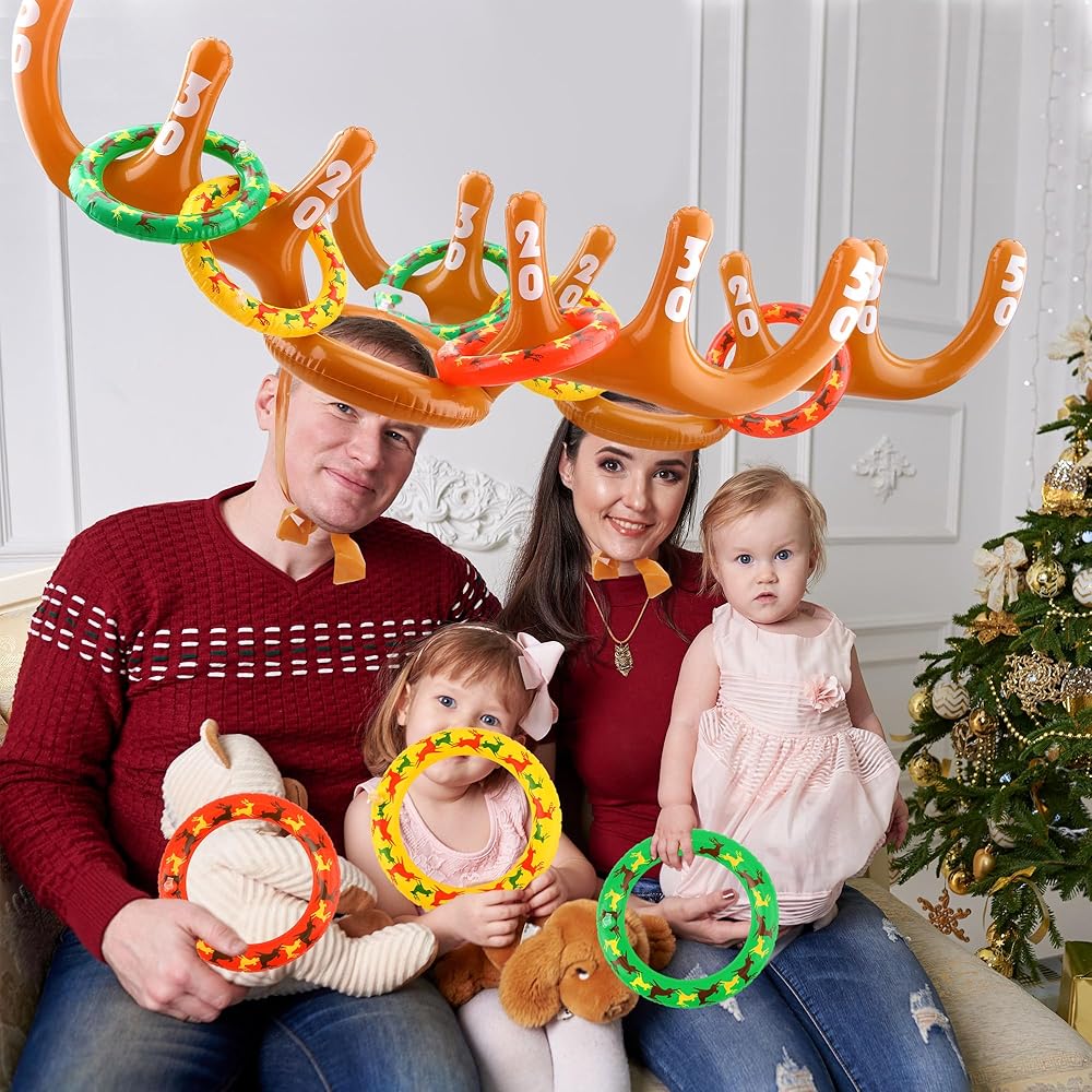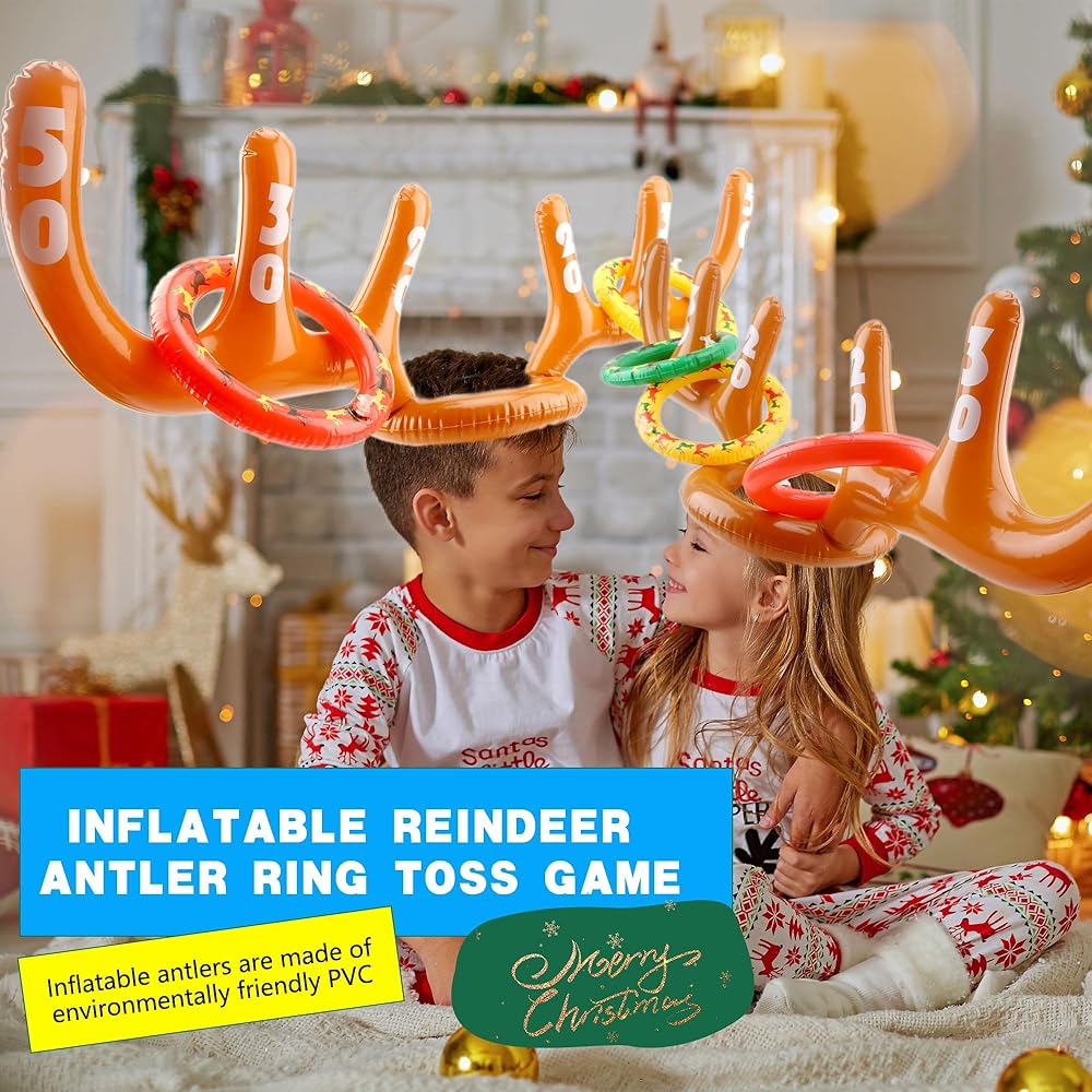 Cotiny 4 Pack Christmas Inflatable Reindeer Antler Ring Toss Game Party Toys for Kids Xmas Party Supplies Indoor Games (4 Score Reindeer Antler, 16 Rings, 1 Pump)