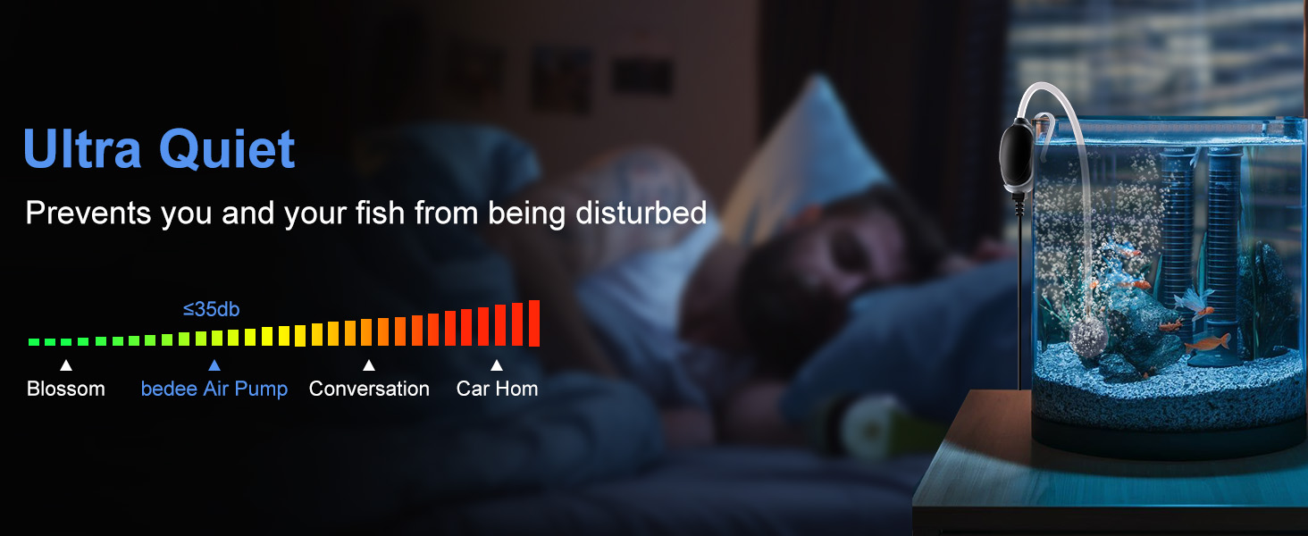 💦🐡 𝗨𝗹𝘁𝗿𝗮 𝗤𝘂𝗶𝗲𝘁& 𝗣𝗼𝘄𝗲𝗿𝗳𝘂𝗹 - تتميز مضخة هواء السمك الصامتة لدينا بتصميم فريد من نوعه، مدفوعة بألواح سيراميك كهرضغطية رقيقة، الضوضاء <35 ديسيبل، بدون ضوضاء، وبالتالي فإن مضخة الأكسجين الموجودة في حوض السمك تكون هادئة جدًا عند وضعها في غرفة المعيشة وغرفة النوم والمكتب.