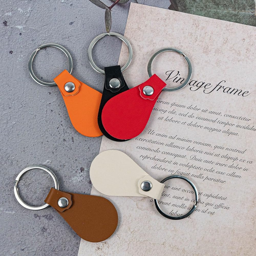 Leather for laser engraving allows you to DIY the pattern of the keychain to make him as your keychain, decoration or car keychain and so on.These leather keychain bulk measure 0.13 inches long/32mm wide 032 inches/80mmm respectively and they come with keychain rings and rivets!