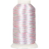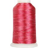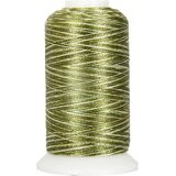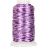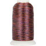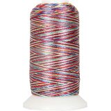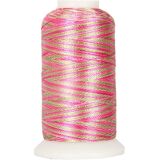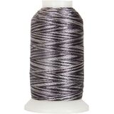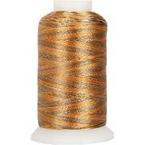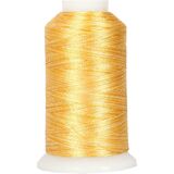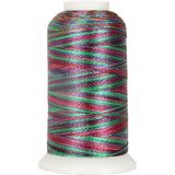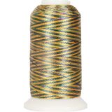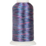 This high sheen polyester thread for machine embroidery has outstanding tensile strength and color-fastness. Available in 25 popular combinations of variegated colors. Color changes every 1 - 2 inches for maximum variegated effects. Ideal for quilting too! We are confident you will be delighted with its strength and performance. Polyester thread offers outstanding performance for today's sophisticated computerized sewing machines. 1000m mini-king cones (1100yds) 100% Polyester. 40 wt.