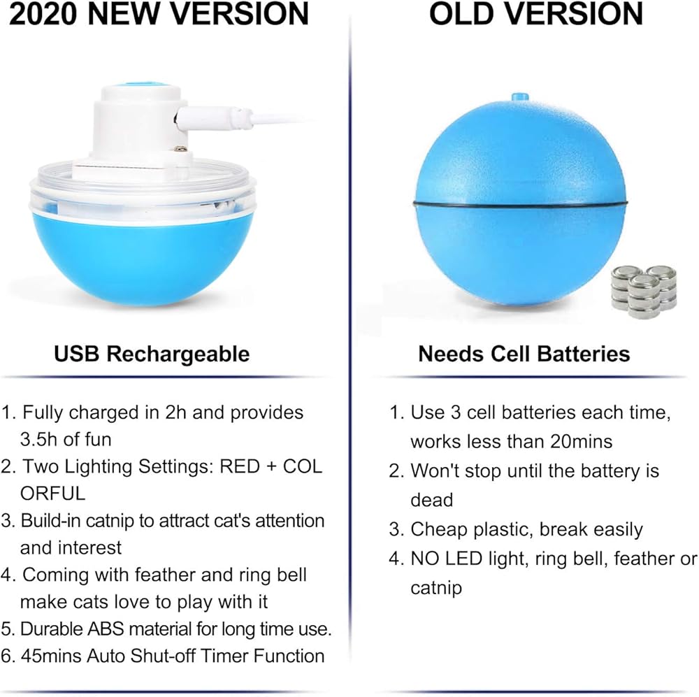 [قابلة لإعادة الشحن عبر USB] - بطارية ليثيوم أيون مدمجة بقدرة 250 مللي أمبير في الساعة، يمكن أن تدوم 4 ساعات بعد الشحن لمدة 1.5 ساعة. يمكن أن تغلق تلقائيًا بعد 30 دقيقة، وتمنع قطتك من فقدان الاهتمام بكرة اللعبة ومثالية لأولئك الذين ليس لديهم وقت مع قططهم وكلابهم.