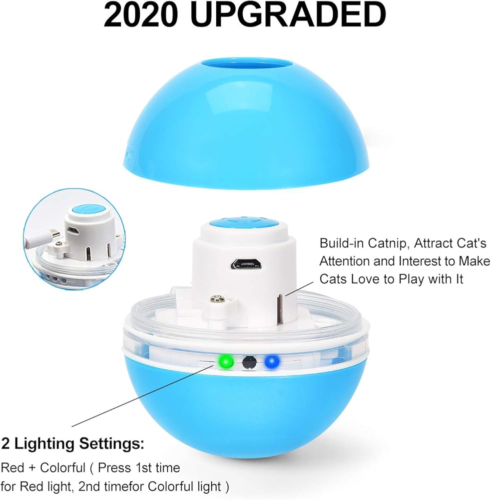 【مطاردة تلقائية ومصباح LED】- ما عليك سوى الضغط على الزر، وستتحرك كرة لعبة القطط الخاصة بنا تلقائيًا بشكل عشوائي، وتتوهج بالضوء الأحمر لجذب انتباه قطتك. يمكنه أيضًا تغيير الاتجاه تلقائيًا عند الاصطدام بأي عوائق مثل الجدار أو الكرسي أو الباب وما إلى ذلك.