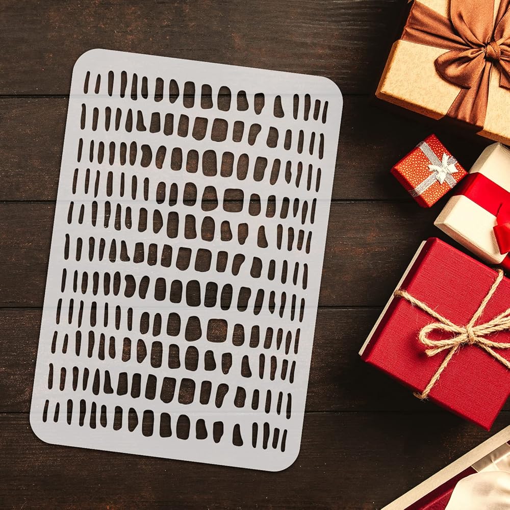 FINGERINSPIRE استنسل رسم بقع هندسية مقاس 11.7 × 8.3 بوصة استنسل جلد تمساح بلاستيكي كبير غير منتظم الشكل مربع الشكل استنسل فني حرفي استنسل خلفية حجرية لأثاث بلاط الحائط