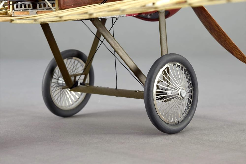 Model airplane for adults. Modelling kit to build advanced level. The model is made of metal for the structure, and wood for the wings. Suitable for its exhibition at any room even having a large scale due to its compact measurements. Museum quality.