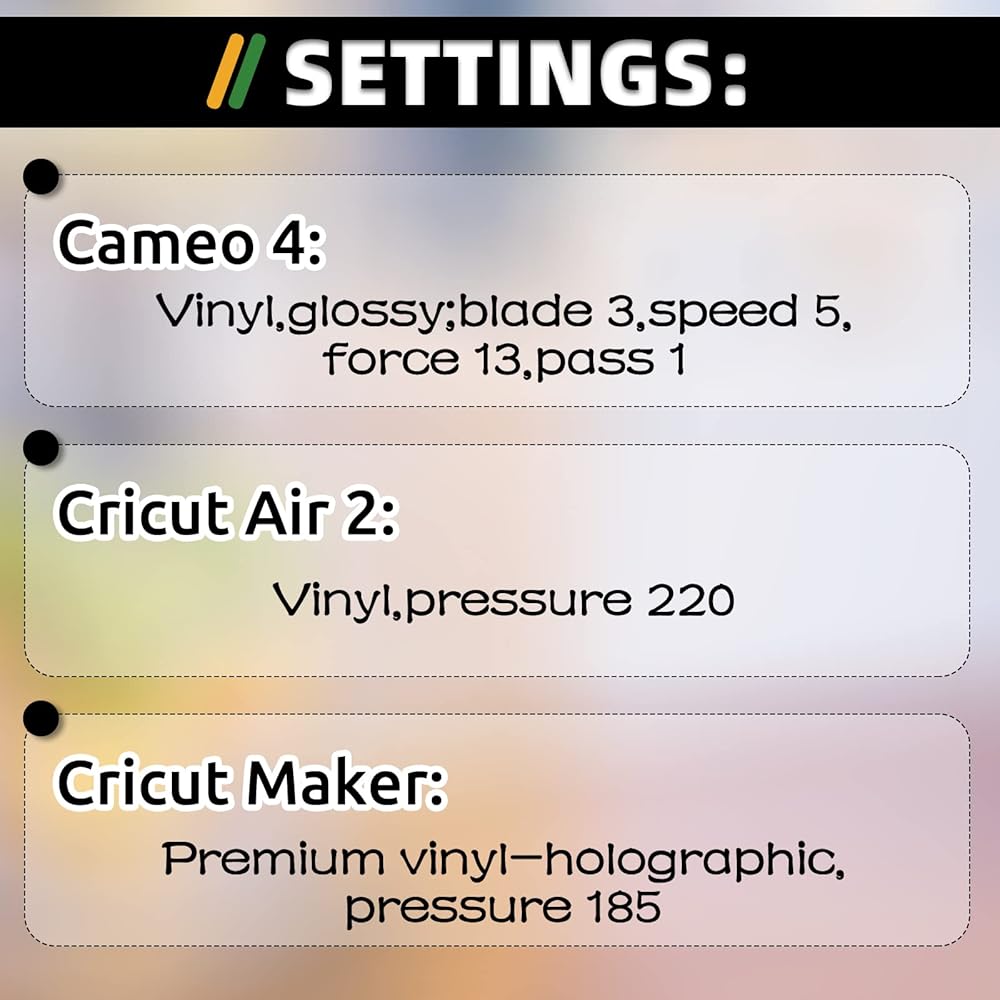 Note:this red shimmer vinyl is thicker than other standard vinyl.Please adjust the setting before cutting. And please also remove the clear protective layer beffore cutting.