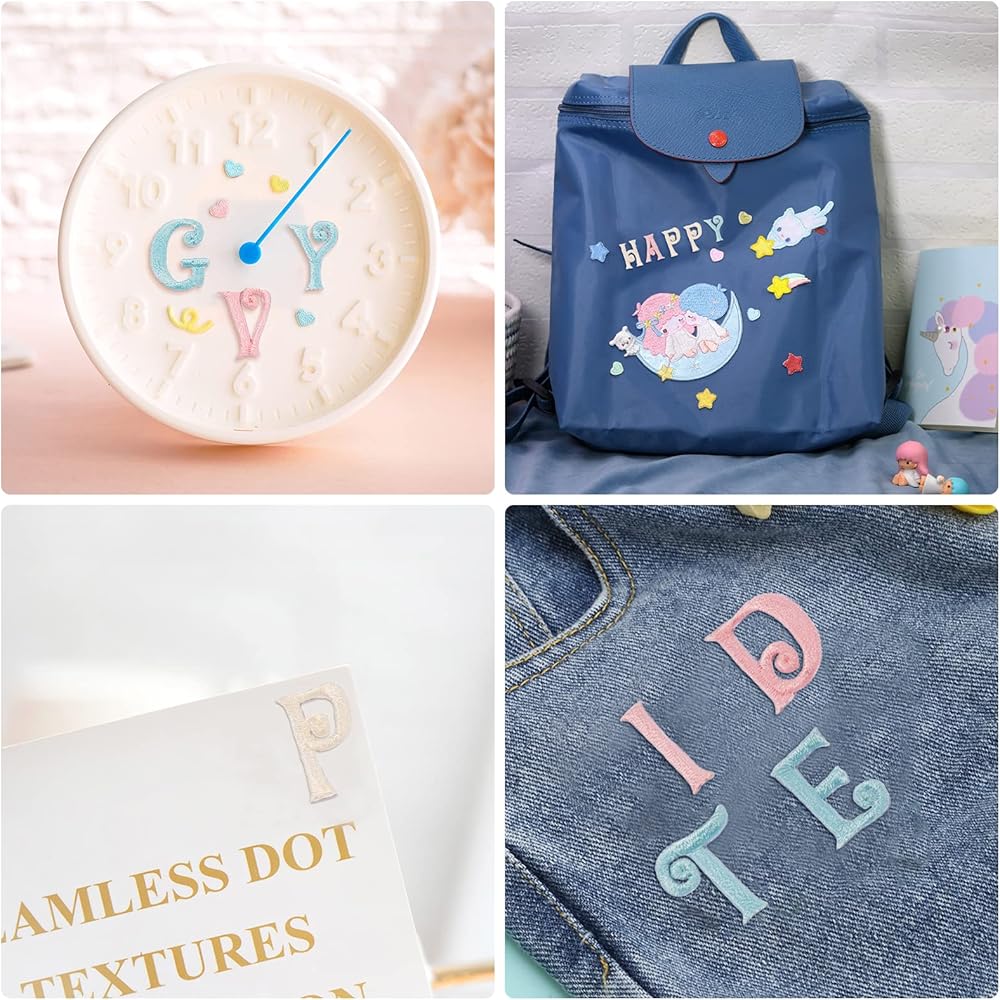 خامة عالية الجودة: هذه الرقع الأبجدية مصنوعة من أقمشة مطرزة وغير منسوجة، والتي ليس من السهل تشويهها أو بهتانها. يوجد غراء على الجزء الخلفي من الرقعة، سهل الكي أو الخياطة