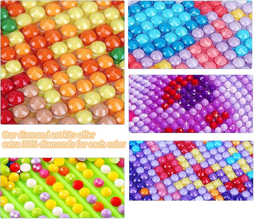 • 【HD Canvas】Diamond art numbers and symbols on the HD canvas are clear and easy to read. You get about 30% extra beads in every color to prevent the occurrence of insufficient diamonds