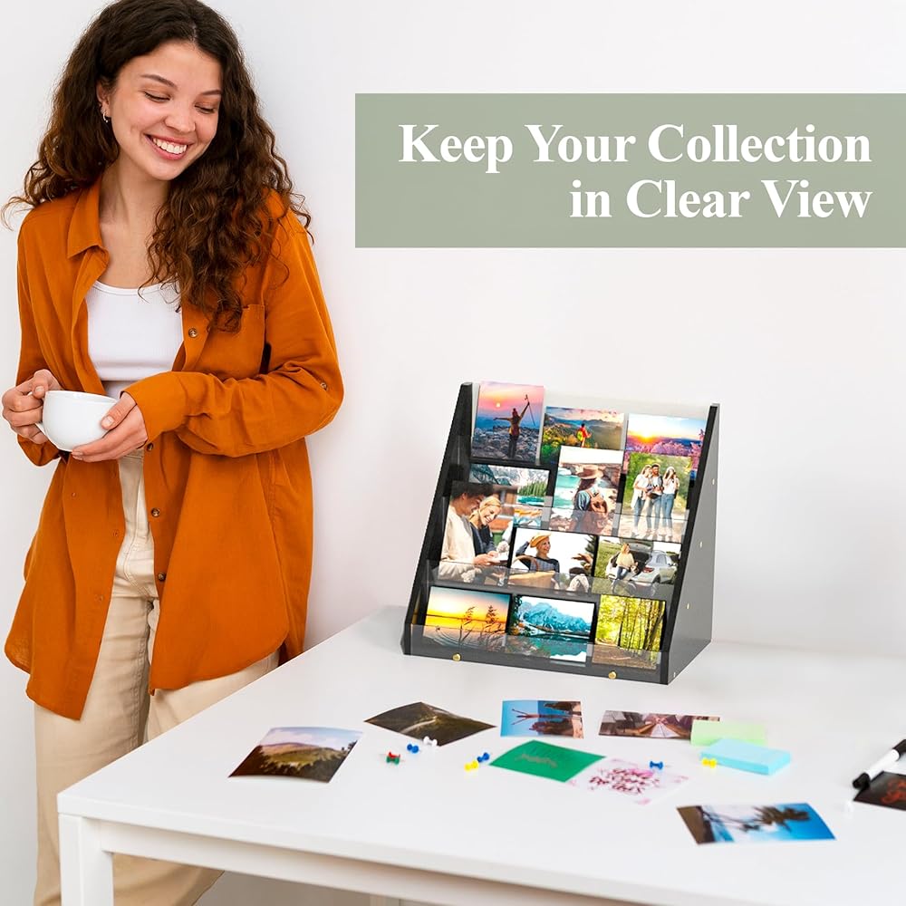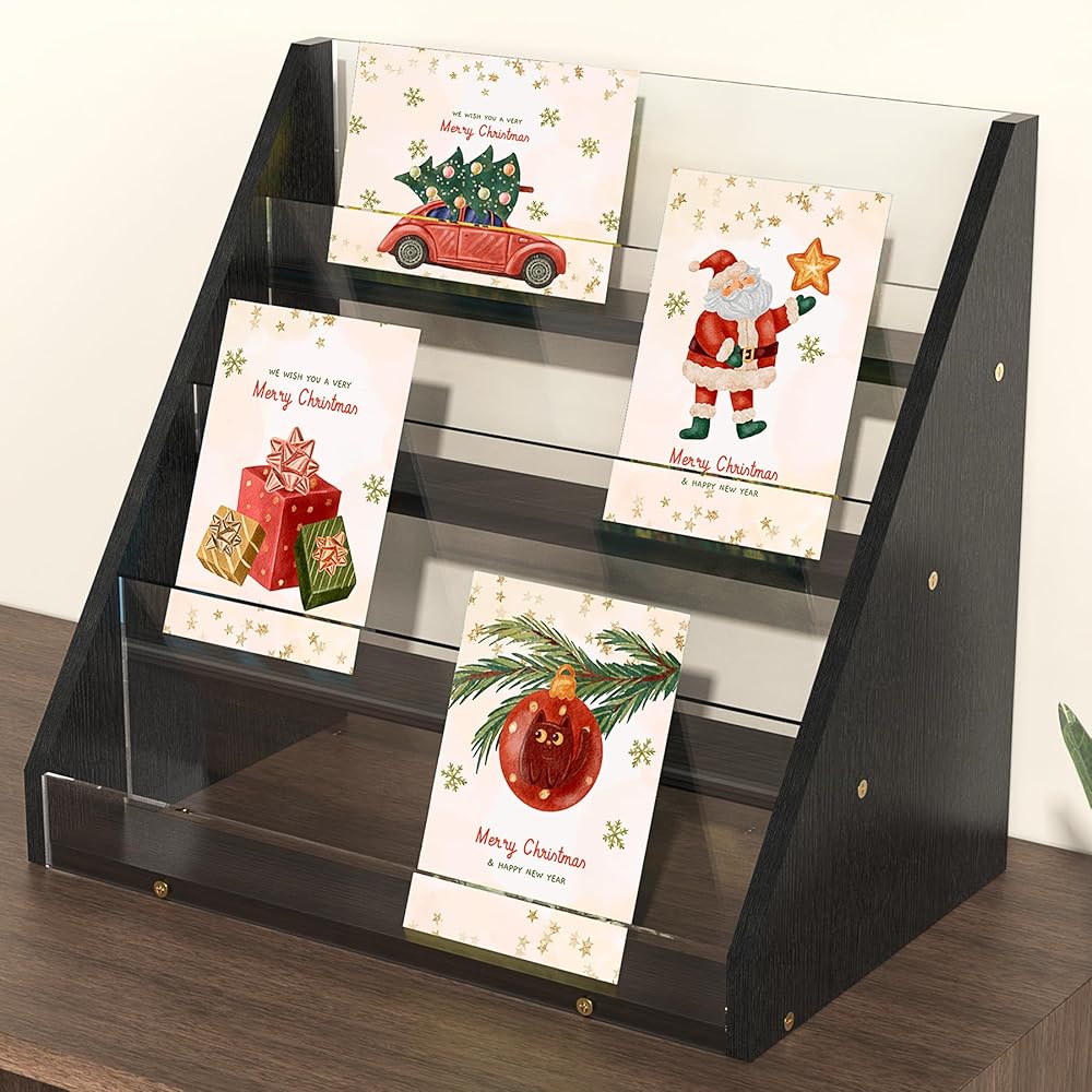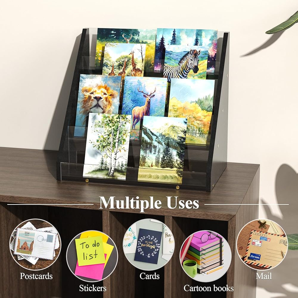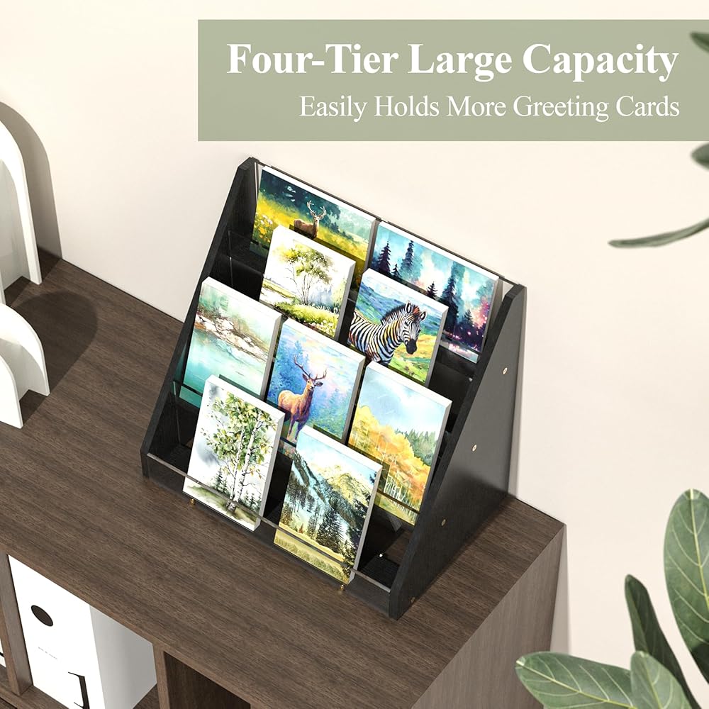 📚【Four-Tier Ample Capacity Design】Four levels of display space easily accommodate a multitude of greeting cards, ensuring your collection is both visible at a glance and showcased to the fullest.