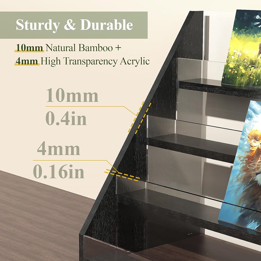 NiHome 4-Tier Bamboo & Acrylic Greeting Card Display Stand for Cards, Photos, Postcards - Durable Stylish Showcase Organizer with High-Transparency Panels for Home, Wedding & Keepsakes