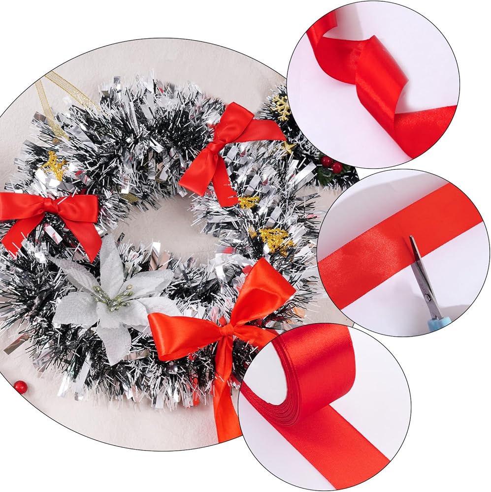 طريقة بسيطة للاستخدام: شريط الساتان المزخرف الخاص بنا ذو وجهين، ويمكنك طيه بأي شكل تريده. من خلال قص الشريط الأحمر بالطول والشكل المناسبين، يمكنك إنشاء أقواس شريطية رائعة أو عناصر زخرفية أخرى لإضافة لمسة شخصية وأسلوب أنيق إلى زينة عيد الميلاد وبطاقات العطلات وتغليف الباقة والديكورات الأخرى.