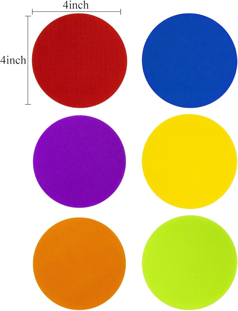 علامات بقعة السجاد من دوهيا، 4 بوصات، بقع سجاد للفصل الدراسي، سجادة أرضية على شكل نجمة، علامات نقاط دائرية لمعلمي مرحلة ما قبل المدرسة ورياض الأطفال D2-DTBJT (دائرية ملونة)