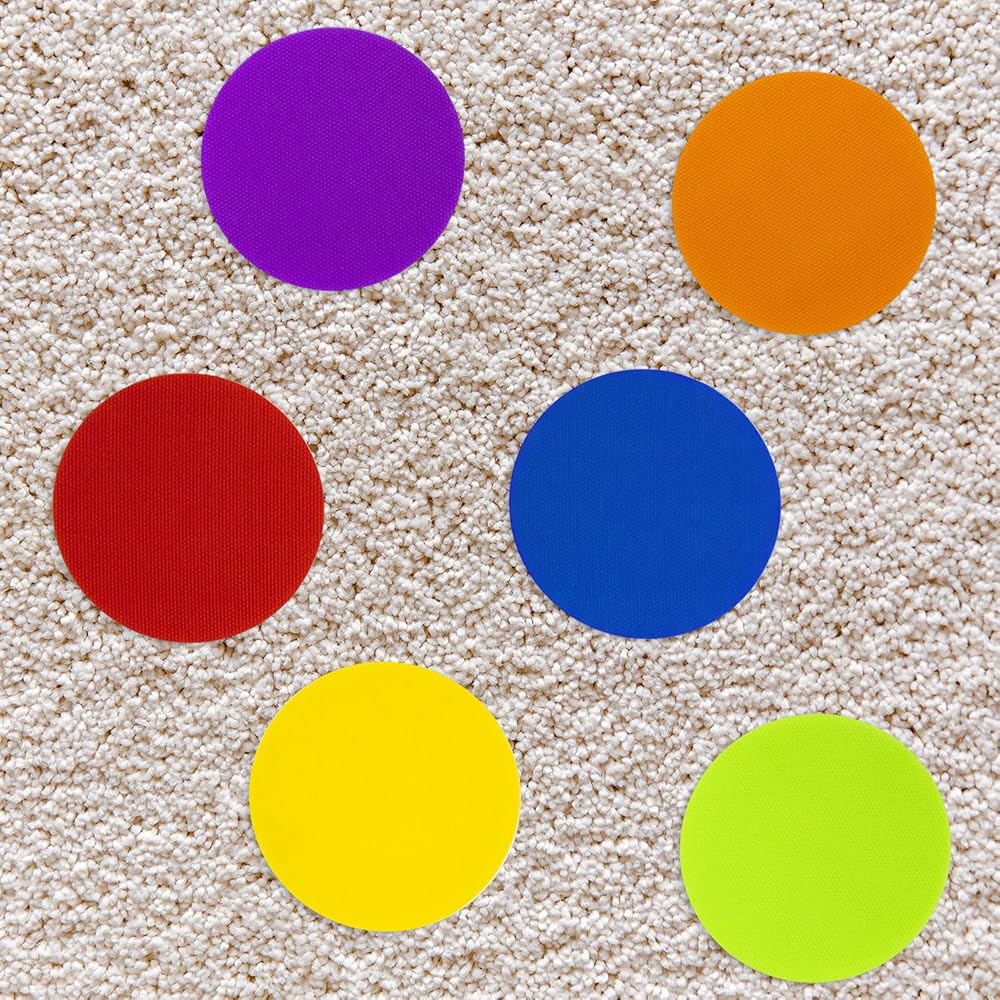 🧰 Convenient - 4" in diameter and 6 different vibrant colors , carpet markers adhere so well to carpets that custodians can vacuum over all attached carpet dots without removal. make it convenient for you to carry and store, you can hang them on anywhere you like, won't take up spaces, that custodians can vacuum over all attached carpet dots without removal!