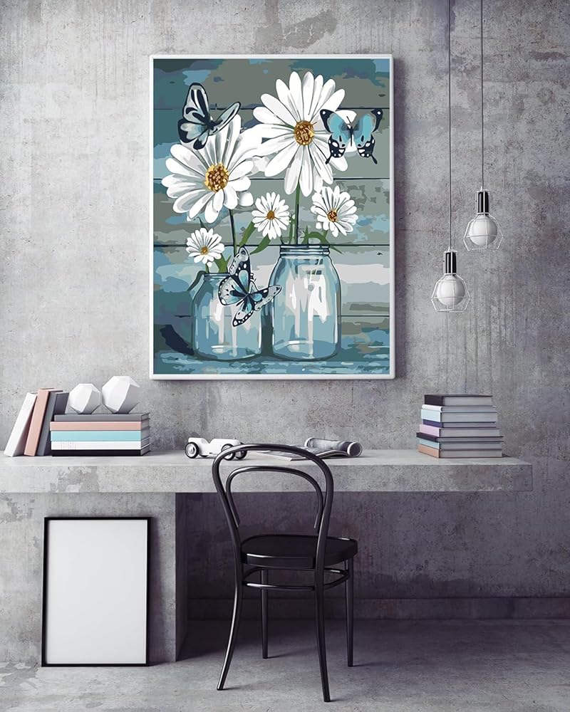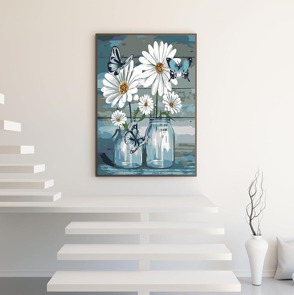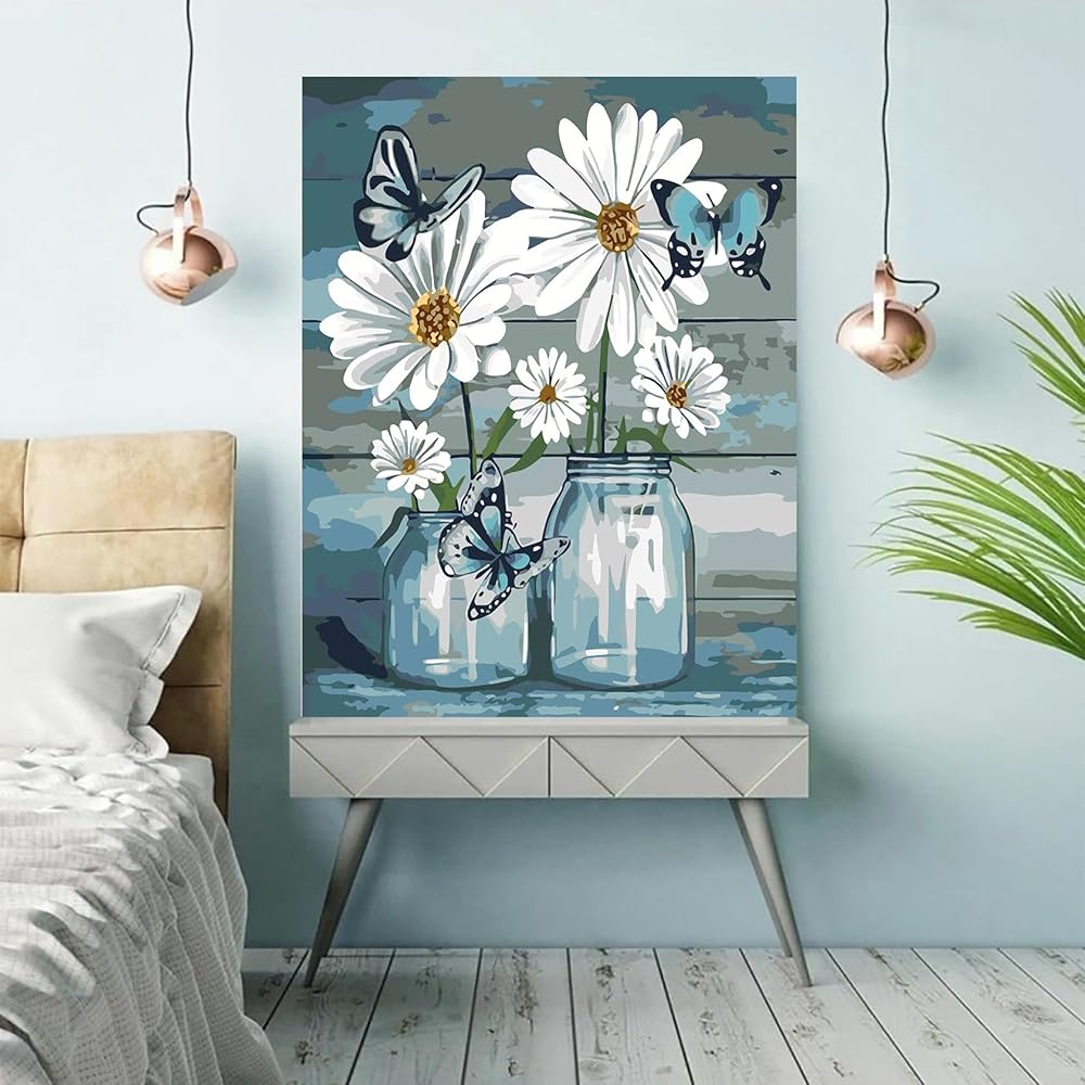 The Colorful Butterfly Flower Pot Paint by Numbers Kit for Adults Beginner