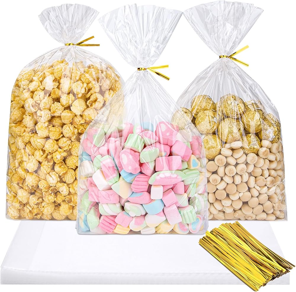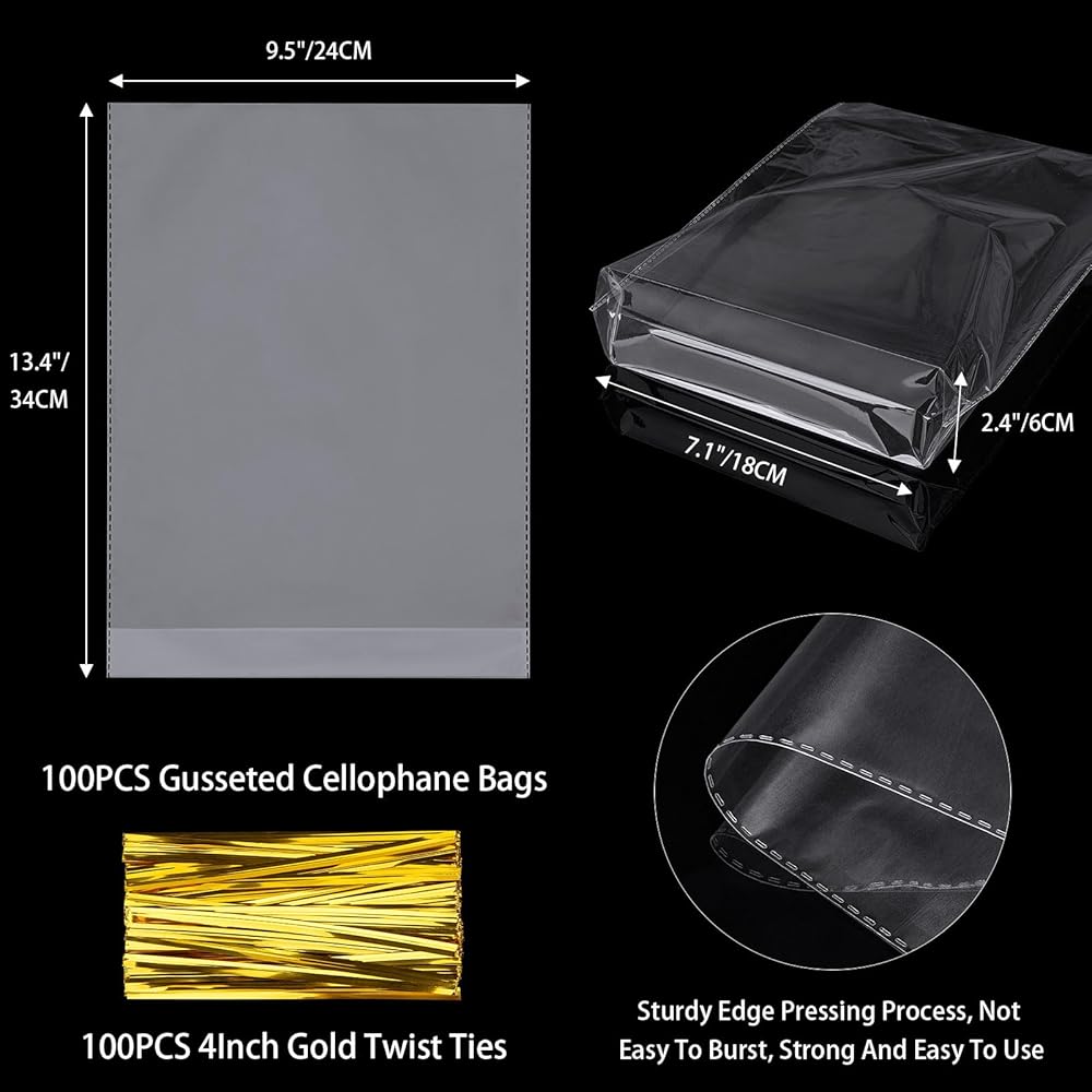 تتضمن العبوة: سوف تحصل على 100 قطعة من أكياس السيلوفان المقواة (9.5 بوصة × 2.4 بوصة × 13.4 بوصة) و100 قطعة من ربطات العنق الذهبية مقاس 4 بوصات تساهم في اختيار شراء مريح وشامل لخطة تغليف الهدايا/الطعام. يرجى التأكد من المقاس الصحيح الذي تحتاجه حقًا قبل الشراء.