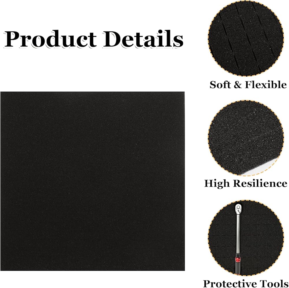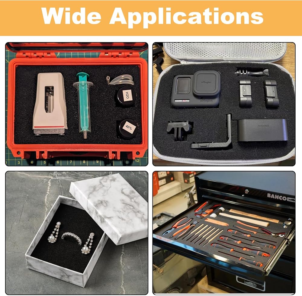 --The polyethylene foam sheet 1 inch can be used for various applications such as organizing tools, equipment, electronic devices, camera gear, jewelry, collectibles, and much more. The pick and pluck foam 12 x12 are suitable for both personal and professional use.Apart from guns, this pluck foam 12 x 12 can also be used for other valuable items like cameras, drones, tools, or electronics.