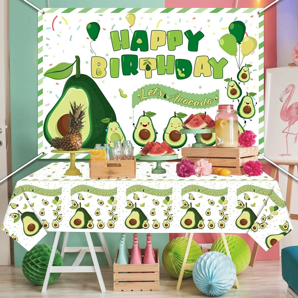 تصميم خاص: تم تصميم غطاء الطاولة هذا خصيصًا بموضوع الأفوكادو. مطبوعة بأنماط وعناصر مختلفة من فاكهة الأفوكادو، بألوان زاهية وأنماط لطيفة. إنه خيار رائع لحفلة أطفالك الصغار!