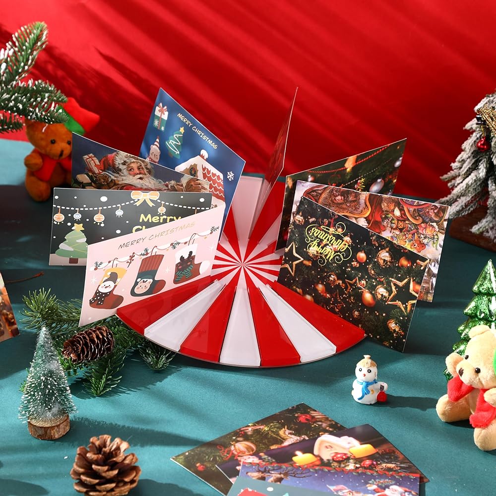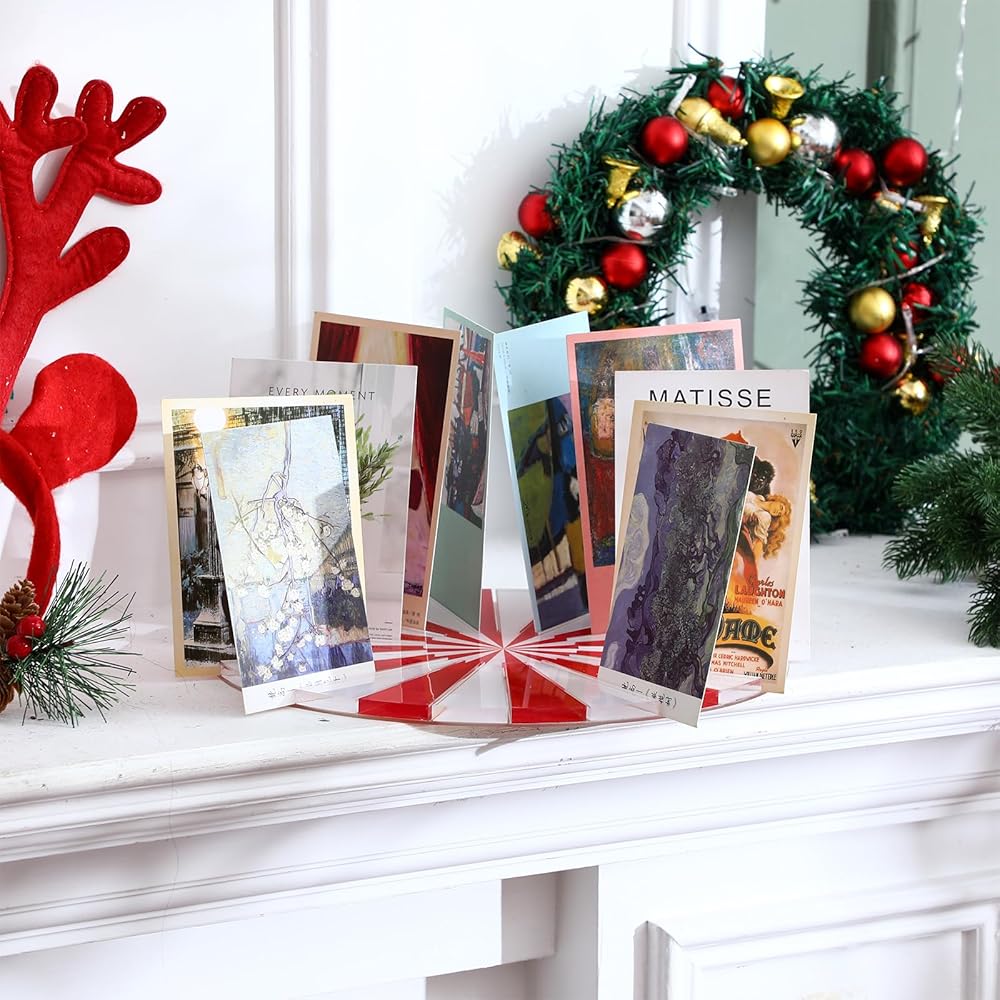 عرض بطاقة عيد الميلاد Thyle مقاس 11.8 بوصة من الأكريليك حامل بطاقة عيد الميلاد حامل عرض بطاقات التهنئة يحمل ما يصل إلى 24 منظم بطاقات بريدية لرف الطاولة ورف المكتب وحفلات الحلوى