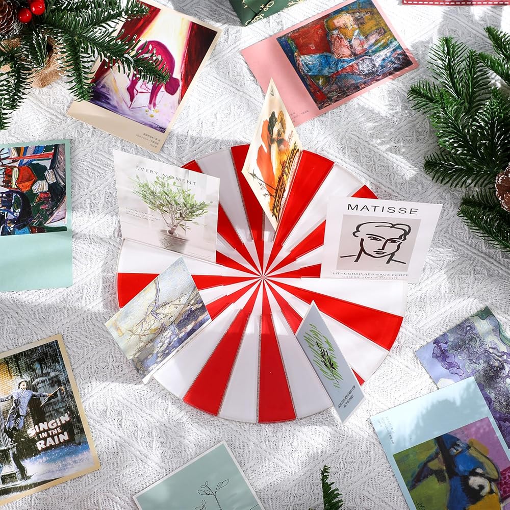 • Easy to Place: this Christmas letter card display stand can be placed flat or upright; You can insert the greeting card into the groove of the display stand, and the greeting card can easily stand up for display