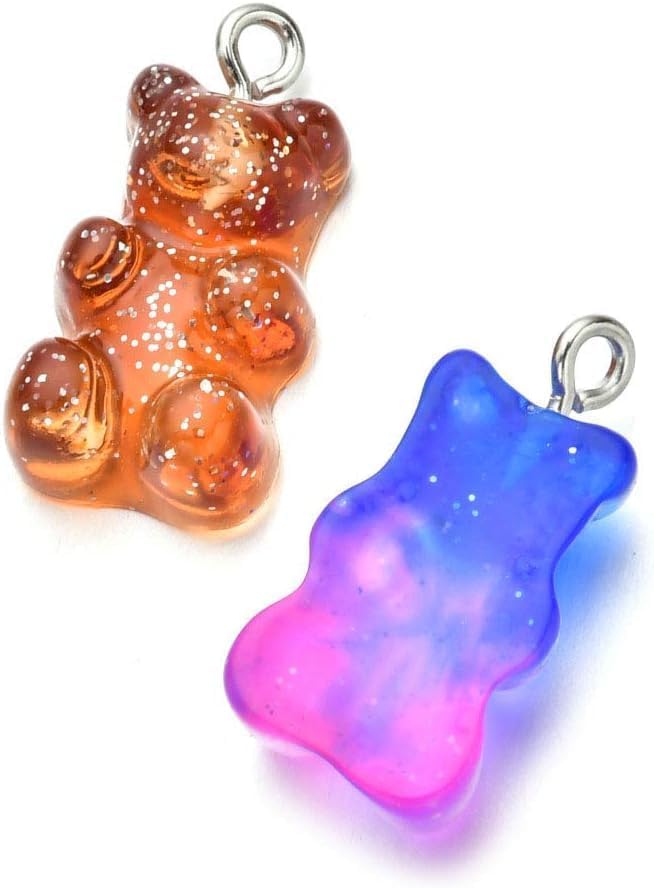 DIY Jewelry Making: You can use these resin bear charms to make earrings, necklaces, bracelets, keychains and other Cute Design: These resin bear charms are designed in gradient colors, which are very cute and attractive. They are made of high-quality resin material, which is durable and safe to use.