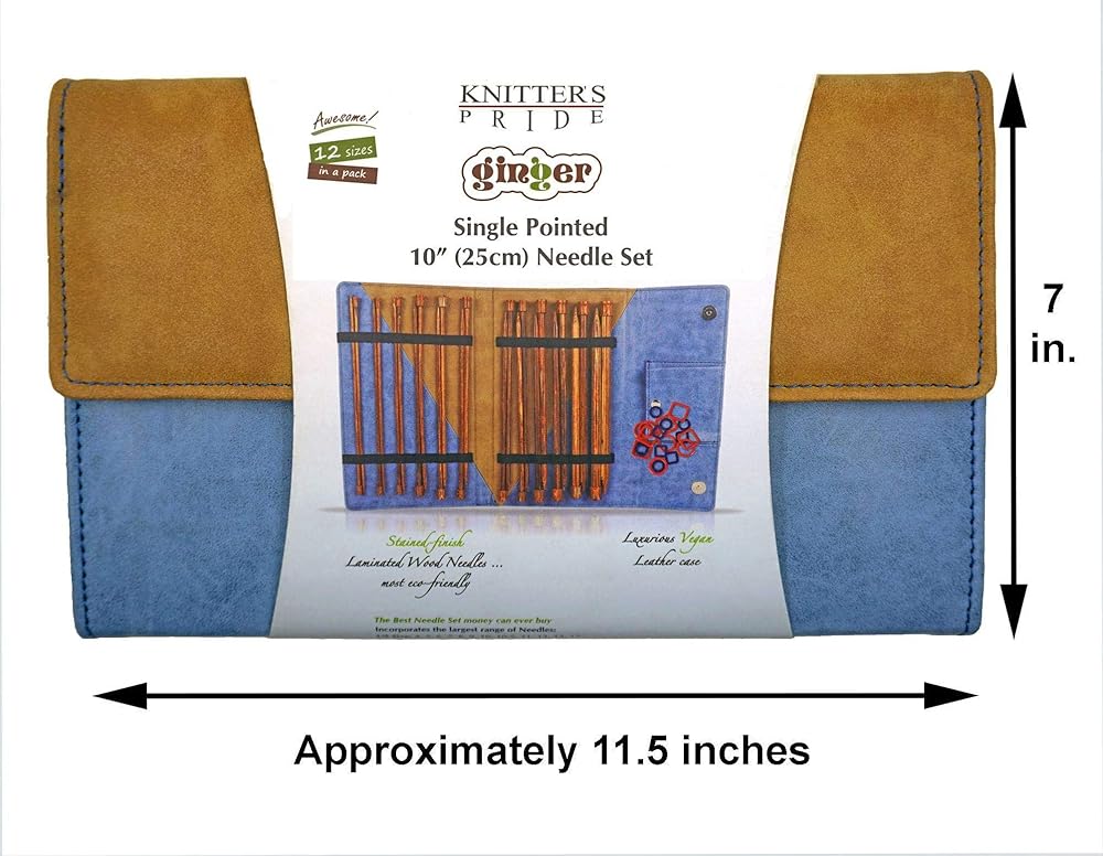Includes 1 Knitter's Pride Knitting Needles Ginger Straight Needle Set 10 inch Set and 1 Craft Project Bag; each Project Bag measures 13 x 16 inches, Includes a drawstring for easy closure and shoulder straps for easy carry-on and keeping projects on-the-go. Set Contents: Includes Set of 12 needle pairs US Sizes 4 / 5 / 6 / 7 / 8 / 9 / 10 / 10.5 / 11 / 13 / 15 / 17 (Metric: 3.5 / 3.75 / 4 / 4.5 / 5 / 5.5 / 6 / 6.5 / 8 / 9 / 10 / 12 mm); 20 Linea stitch markers all contained in a Premium needle case in denim & beige finish.Constuction: A splendid collection of wooden needles in unique tinted look; made from the same, much-loved laminated wood as used for Dreamz and perfectly tapered points can pick up any stitch with ease; lightweight, strong and durable needles; smooth surface that makes any type of yarn glide and is ideal for today's chunky yarns with easy stitch glide and no snagging; warm to the touch and gentle in the hand. Product Authenticity: Item is made by Knitter's Pride, India, to exacting standards and finest materials avaiable assisted with the help of an international advisory panel of knitters and crocheters.