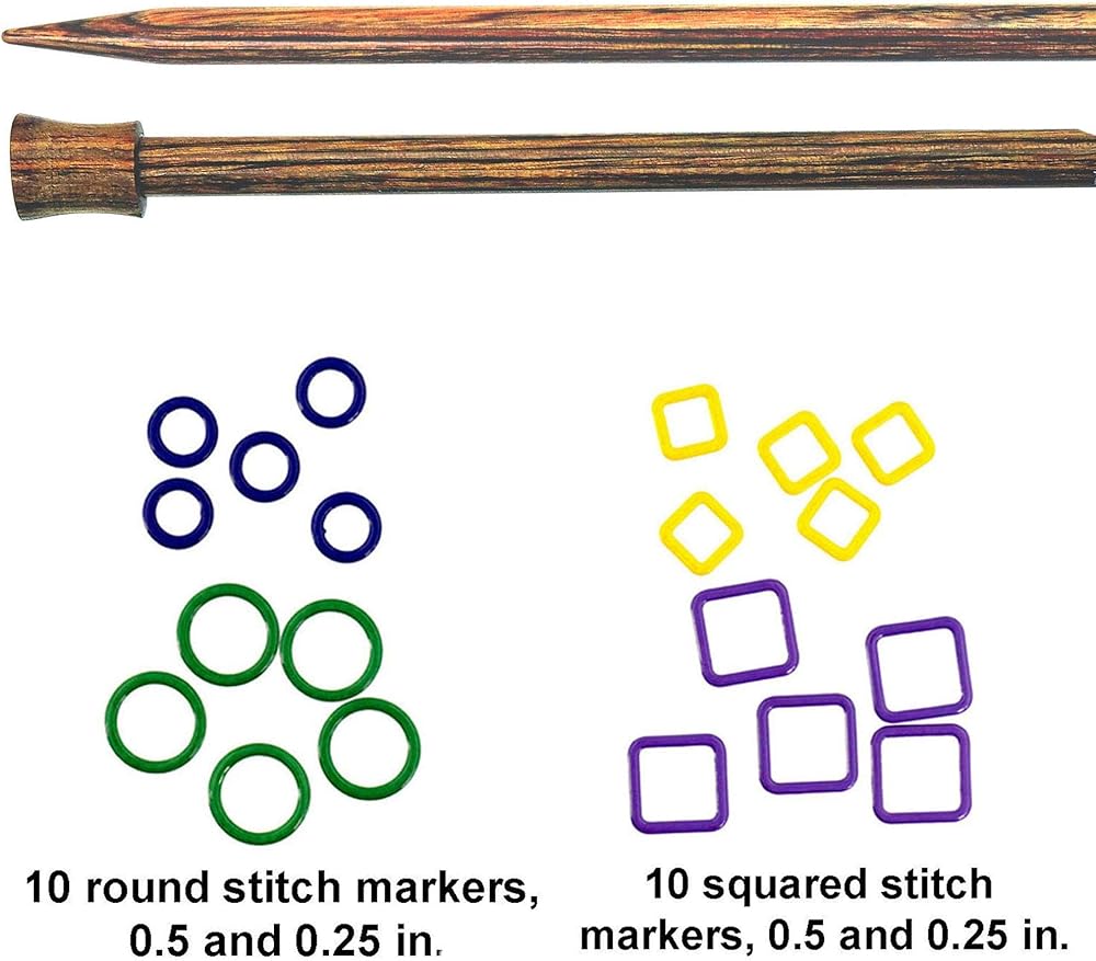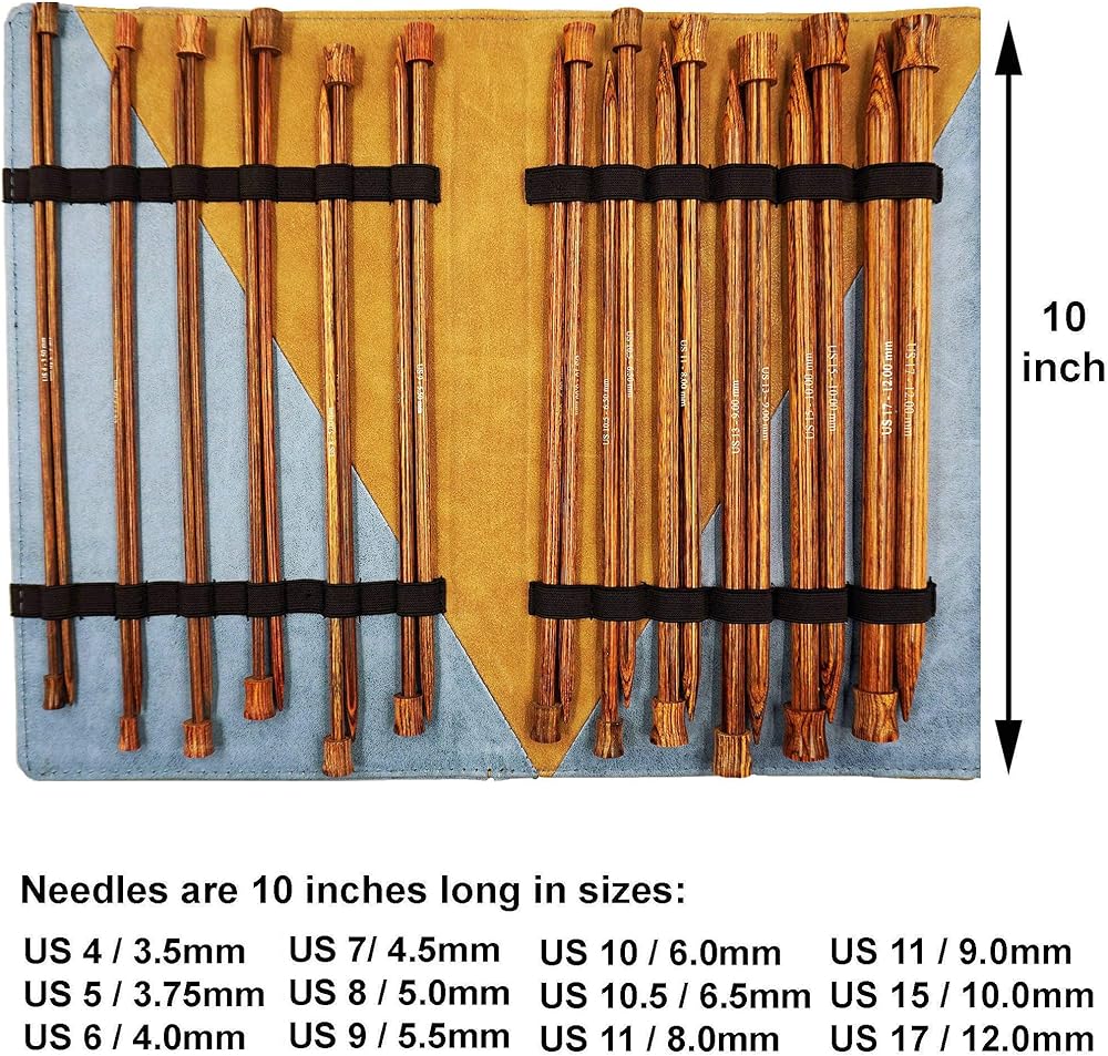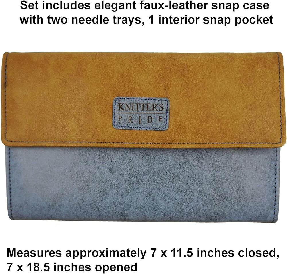 Set Contents: Includes Set of 12 needle pairs US Sizes 4 / 5 / 6 / 7 / 8 / 9 / 10 / 10.5 / 11 / 13 / 15 / 17 (Metric: 3.5 / 3.75 / 4 / 4.5 / 5 / 5.5 / 6 / 6.5 / 8 / 9 / 10 / 12 mm); 20 Linea stitch markers all contained in a Premium needle case in denim & beige finish
