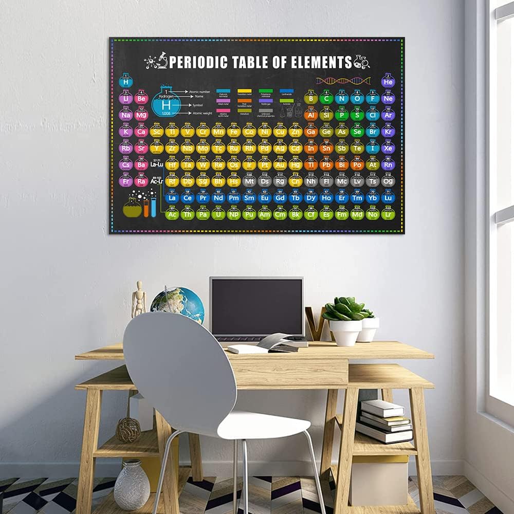 Large size.The periodic table of elements adopts 24x16inch, allowing you to easily read chemical periodic table posters in the study or classroom environment.