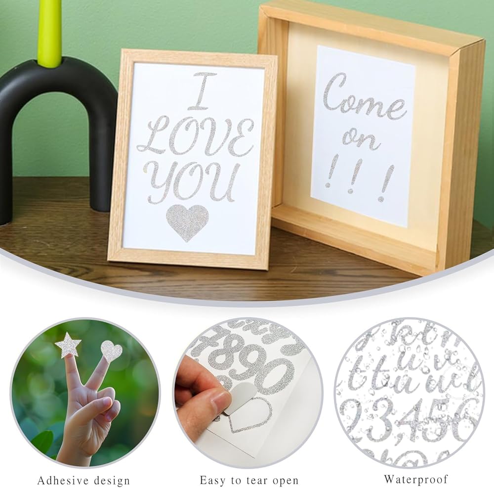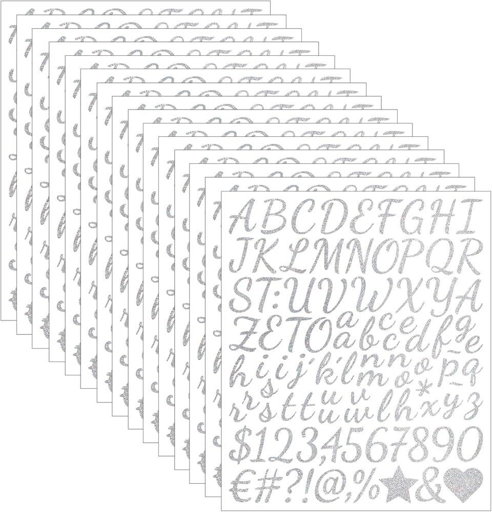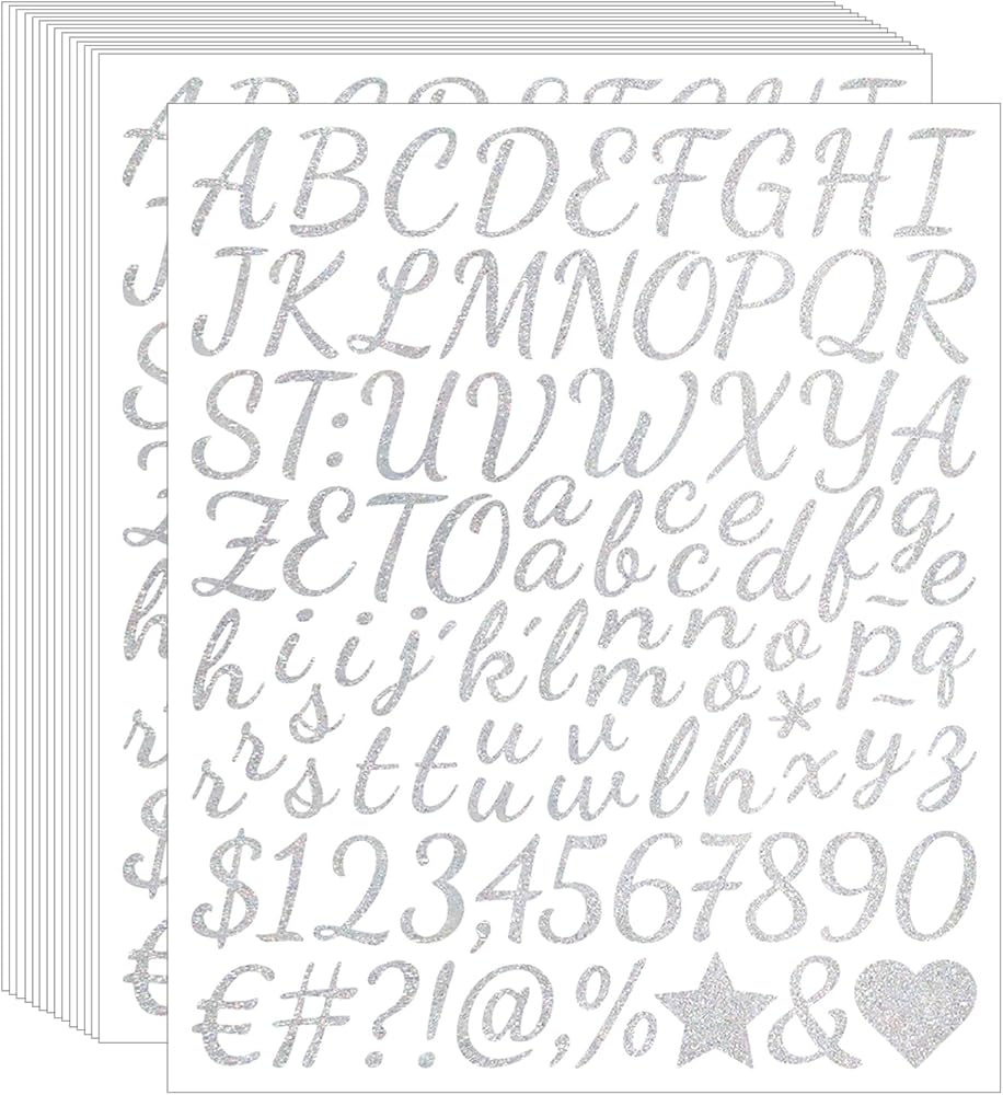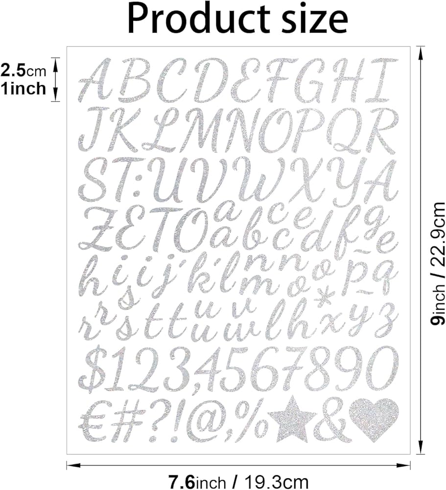 Each sheet measures about 7.6 x 9inches / 19.3x 22.9cm, glitter letter stickers are designed with various styles: capital letter, lowercase letter, numbers, stars, hearts, signs, etc.