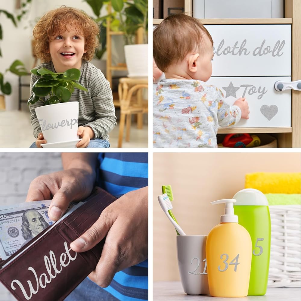 The package comes with 15 Sheets alphabet and number stickers, Each sheet contains 30 pieces of capital letters,38pieces of lowercase letters,10 number and 18 symbols,1440 pieces total