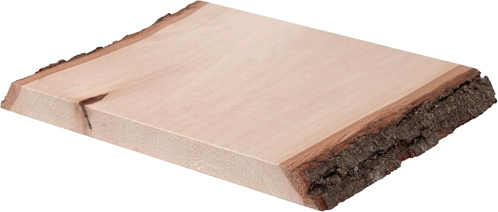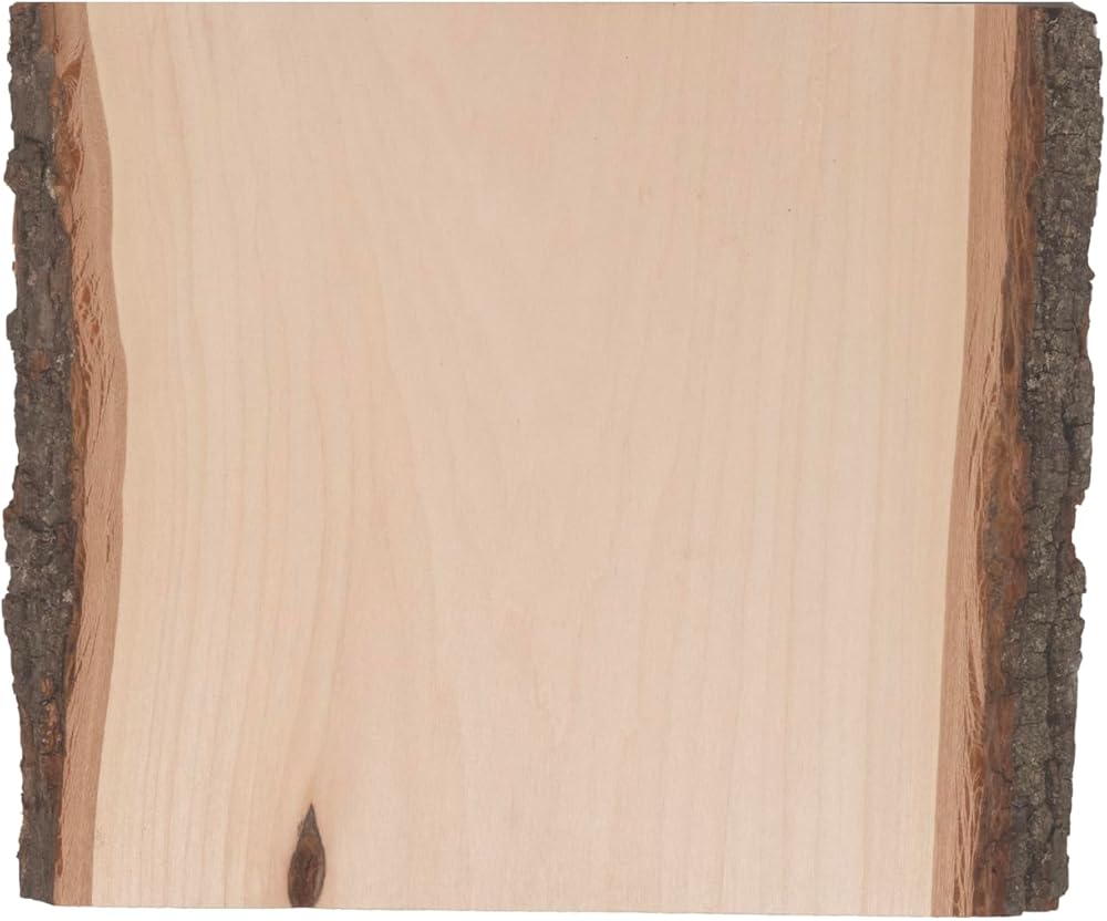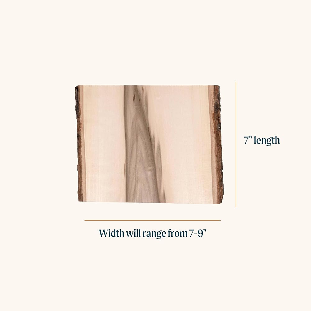 Walnut Hollow's Rustic Basswood Planks have been selected especially for their unique, naturally occurring characteristics such as flecking, mineral streaks, knots, etc. While each plank differs slightly in size and shape, it has its own big personality for truly one-of-a-kind crafts, art, custom signs, home decor projects, hobbies, and more. Refer to the photos in this listing to see the variety of natural characteristics these Rustic pieces may offer. Planks can be painted, decoupaged, stamped, engraved, and carved. No chemicals are used in manufacturing, making them an excellent choice as plate chargers and serving platters for DIY events like picnics, parties, and weddings. Proudly Made in America at Walnut Hollow in Dodgeville, Wisconsin, each piece is kiln-dried and sanded smooth. It's then inspected to ensure the natural bark live edge has been maintained before careful shrink-wrapping. The width of each piece is 7 in. to 9 in.; length is 7 in.; thickness is 5/8 in..