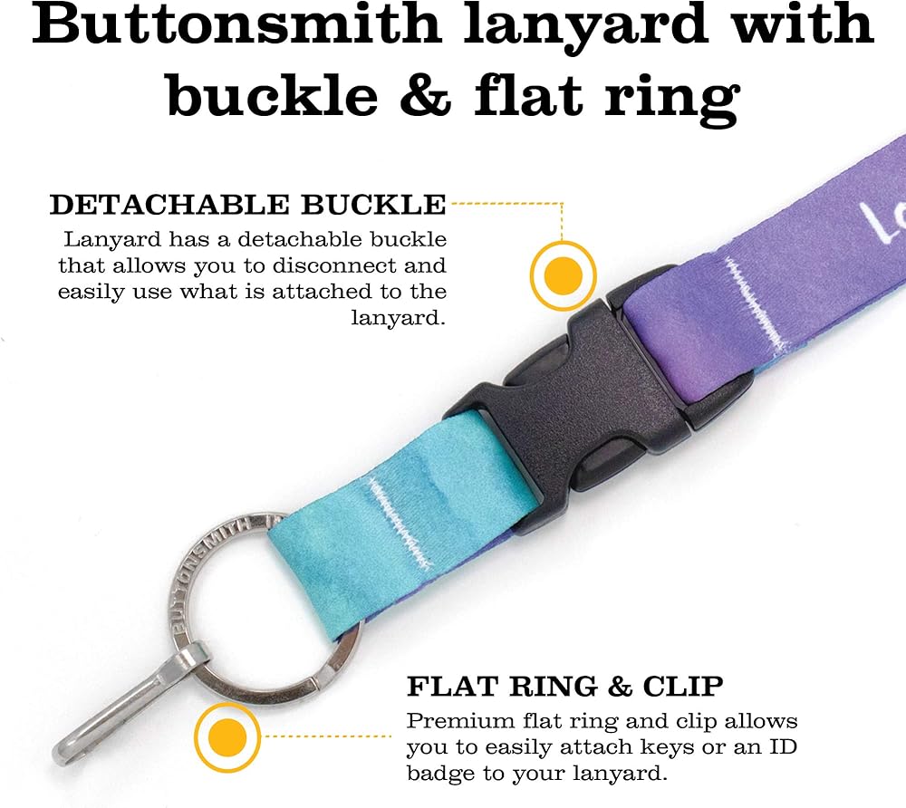 THIS LANYARD IS DESIGNED TO MAKE YOU SMILE. You wear your lanyard more than any piece of clothing you own. It should make you smile. SOFT AND BEAUTIFUL: We design our lanyards with the softest, silkiest fabric we can find, and then we add a gorgeous design to make your every day a little brighter. MULTIPLE CONFIGURATIONS TO MEET YOUR NEED: We have basic lanyards, premium lanyards with buckles, breakaway lanyards and short wristlet lanyards to fit whatever need you might have.MADE IN USA and GUARANTEED:We are working to bring manufacturing back to the USA and guarantee our products for a full year. We want you to have peace of mind knowing you will love your product! Buttonsmith Inc. is a small American manufacturer based in Carnation, Washington, where the cows are contented. Originally founded as a school project by then-10-year-old Henry, we are now a unionized workplace employing more than a dozen people where we make beautiful environmentally-friendly products designed to bring a little joy to our customers' lives every day. If you are ever in Carnation, stop in and say hi!