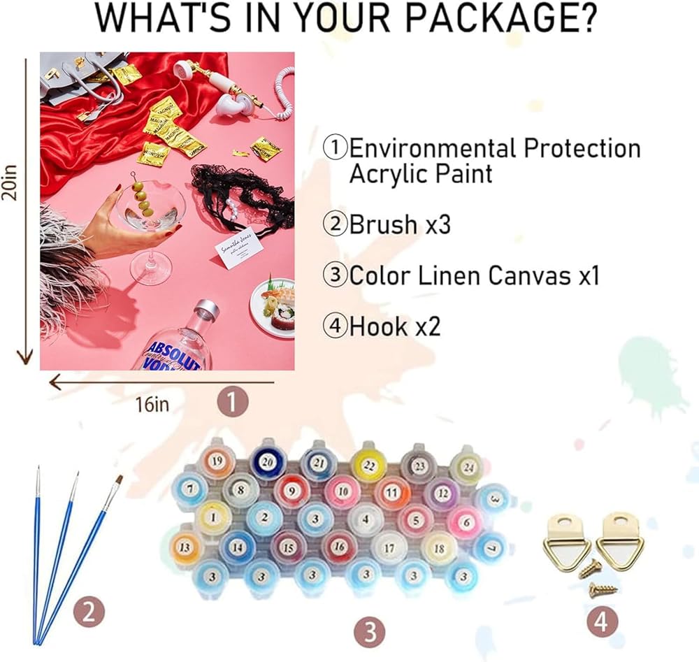 مجموعات الطلاء حسب الأرقام للبالغين من MBNTJHT، طلاء ألوان مائية للمشروبات المضحكة القديمة للمبتدئين، مجموعات طلاء أكريليك DIY لديكور الحائط المنزلي 16 × 20 بوصة