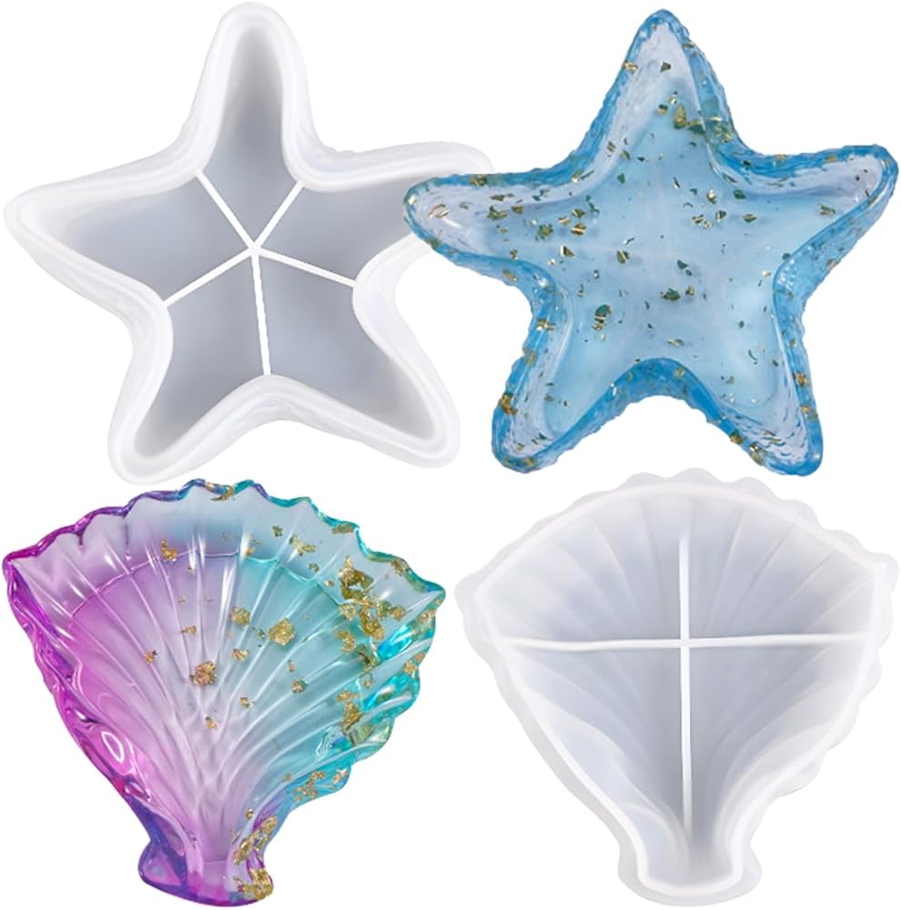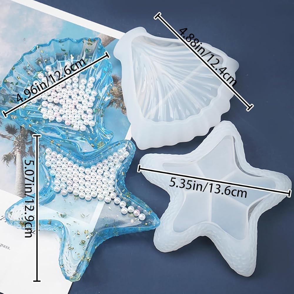 2 قطعة صينية نجم البحر قالب سيليكون قالب صينية المجوهرات قالب حامل الشموع لوحة المجوهرات قالب السيليكون قالب راتنجات الايبوكسي قالب عرض الحلي حاوية تخزين قالب الطبق DIY بها بنفسك الحرف اليدوية ديكور المنزل