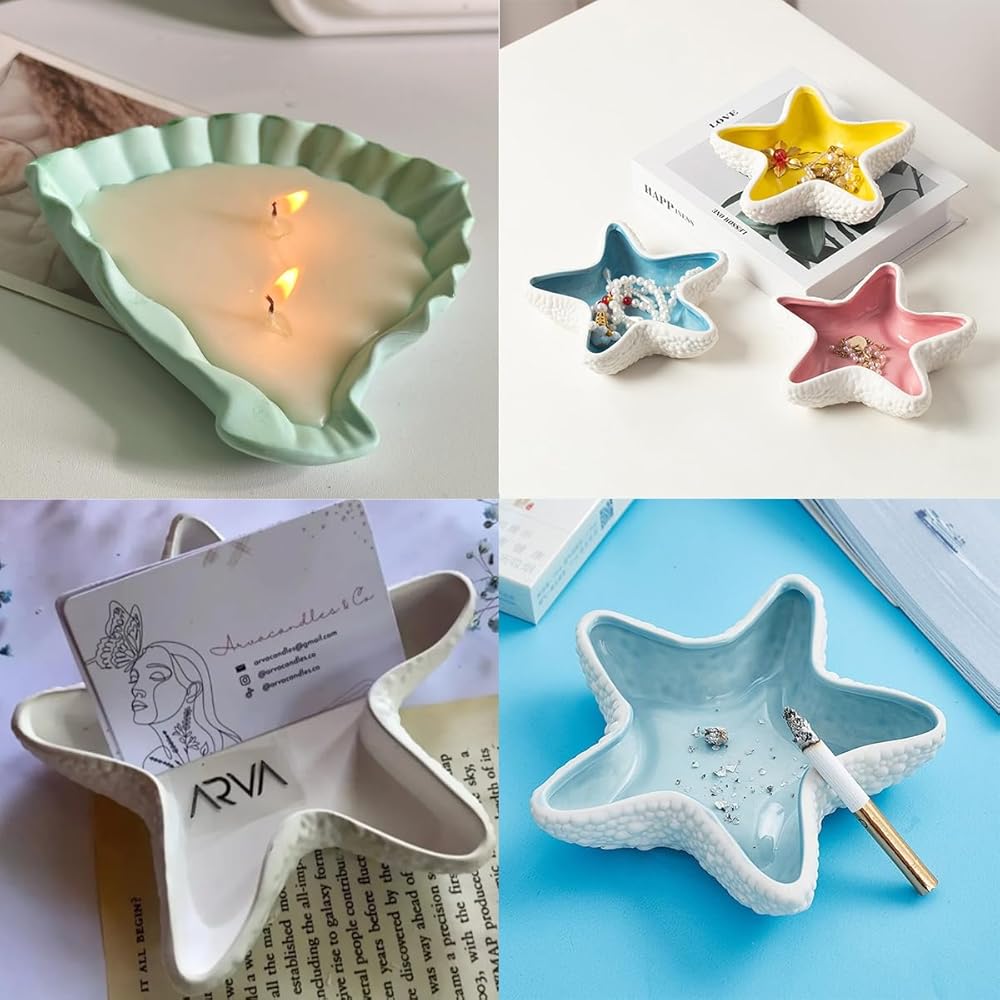 【Widely Use】: The Starfish Tray Silicone Mold finished product could be storage jewelry; candy; makeup brush; lipsticks; pen; keys; coins or other trinkets. Also you could regarded it as candle jar; soap dishes; flower pot and so on