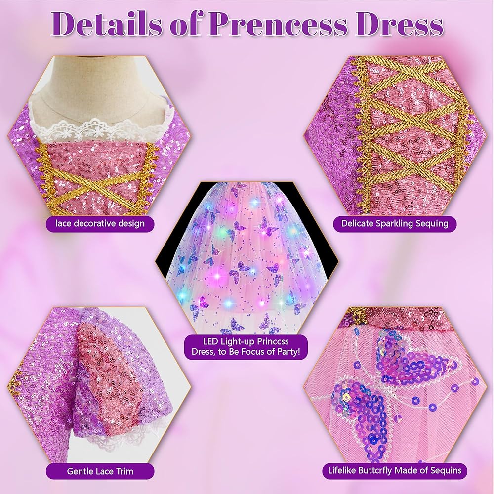 ملابس متعددة الاستخدامات ولا تُنسى: مناسب تمامًا لأعياد الميلاد والهالوين والمناسبات التنكرية واحتفالات عيد الميلاد، يضمن فستان الأطفال المضيء هذا تألق طفلك بشكل مشرق أينما ذهبت. خيار هدية مدروس للفتيات من سن 3 إلى 8 سنوات، مجموعة ملابس LURLEEZ تخلق ذكريات عزيزة تدوم مدى الحياة.