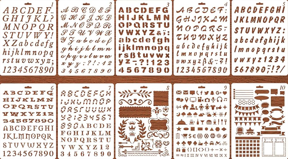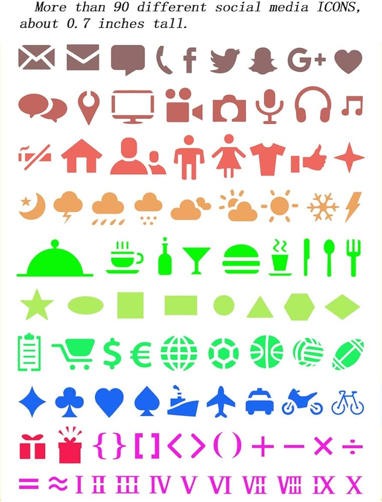 Package Included: 7 PCS letter stencils set has 9 different fonts, including number, upper and lower case letters and special symbols. 3 PCS stencils has more than 100 kinds of graphics and icons.