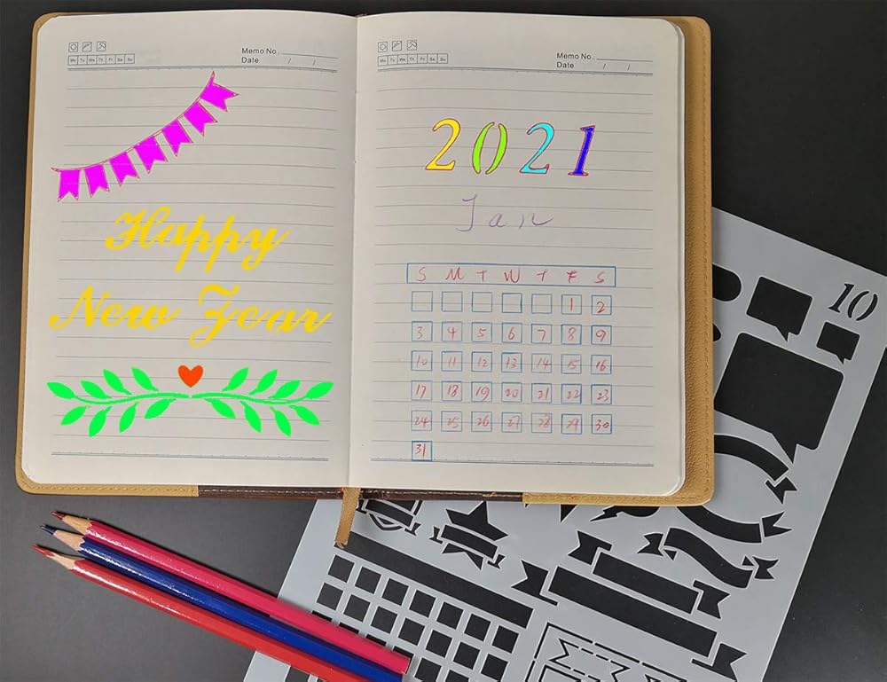 Application:Perfect for scrapbooking, gift card, diary graffiti, craft, bookmark, school project and any other project. Alphabet Stencils can be used with Bullet Stencils and Journal Stencils to enrich your design.