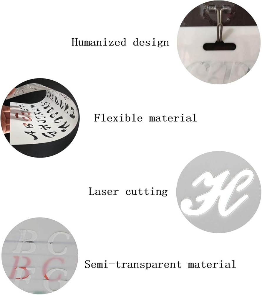 Material: stencils are made of soft plastic Eco-friendly PET material, safe, reusable, durable and washable.