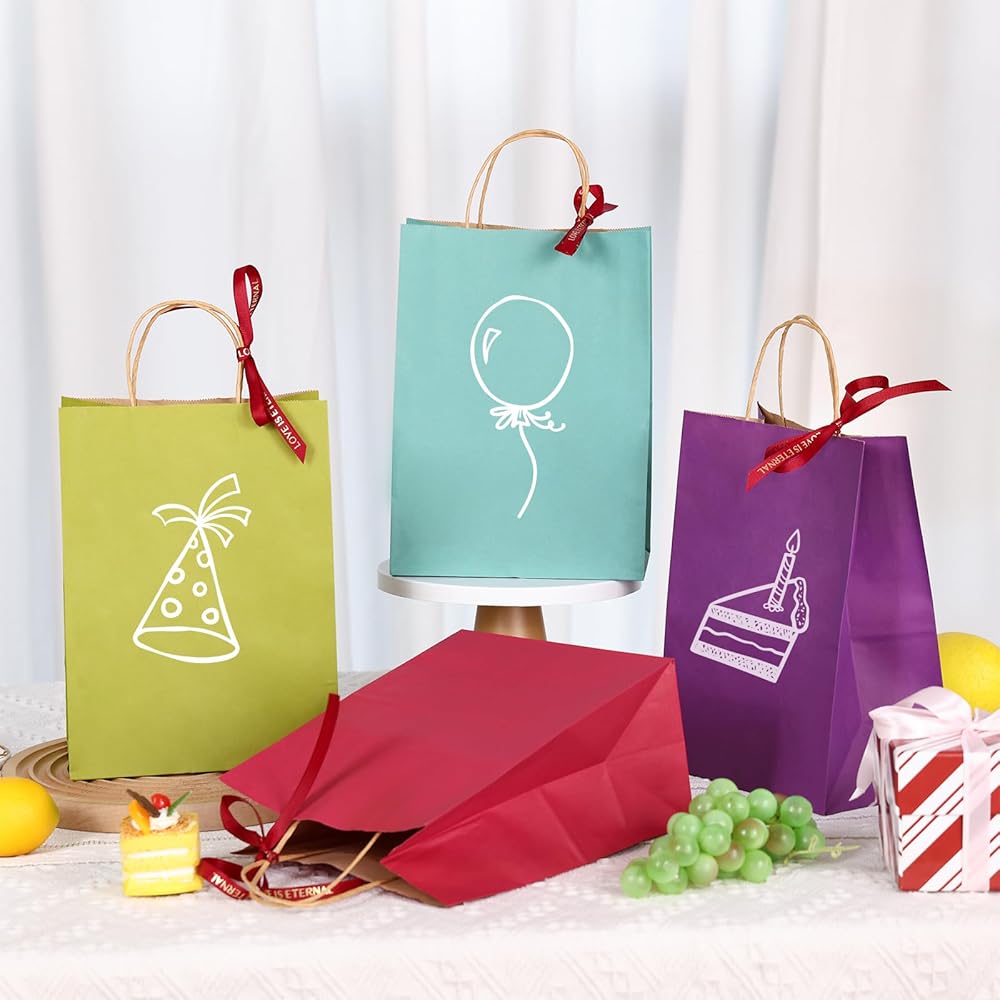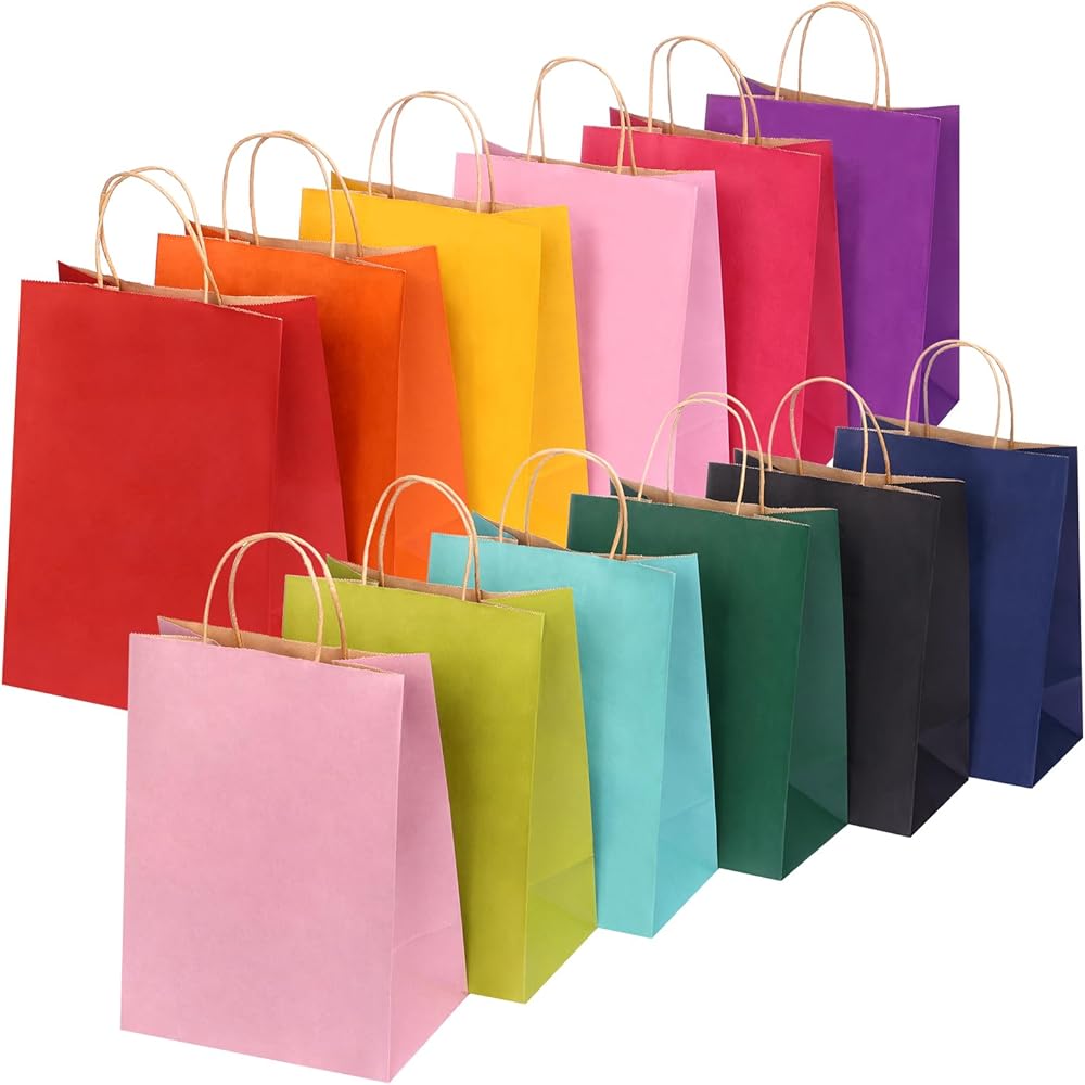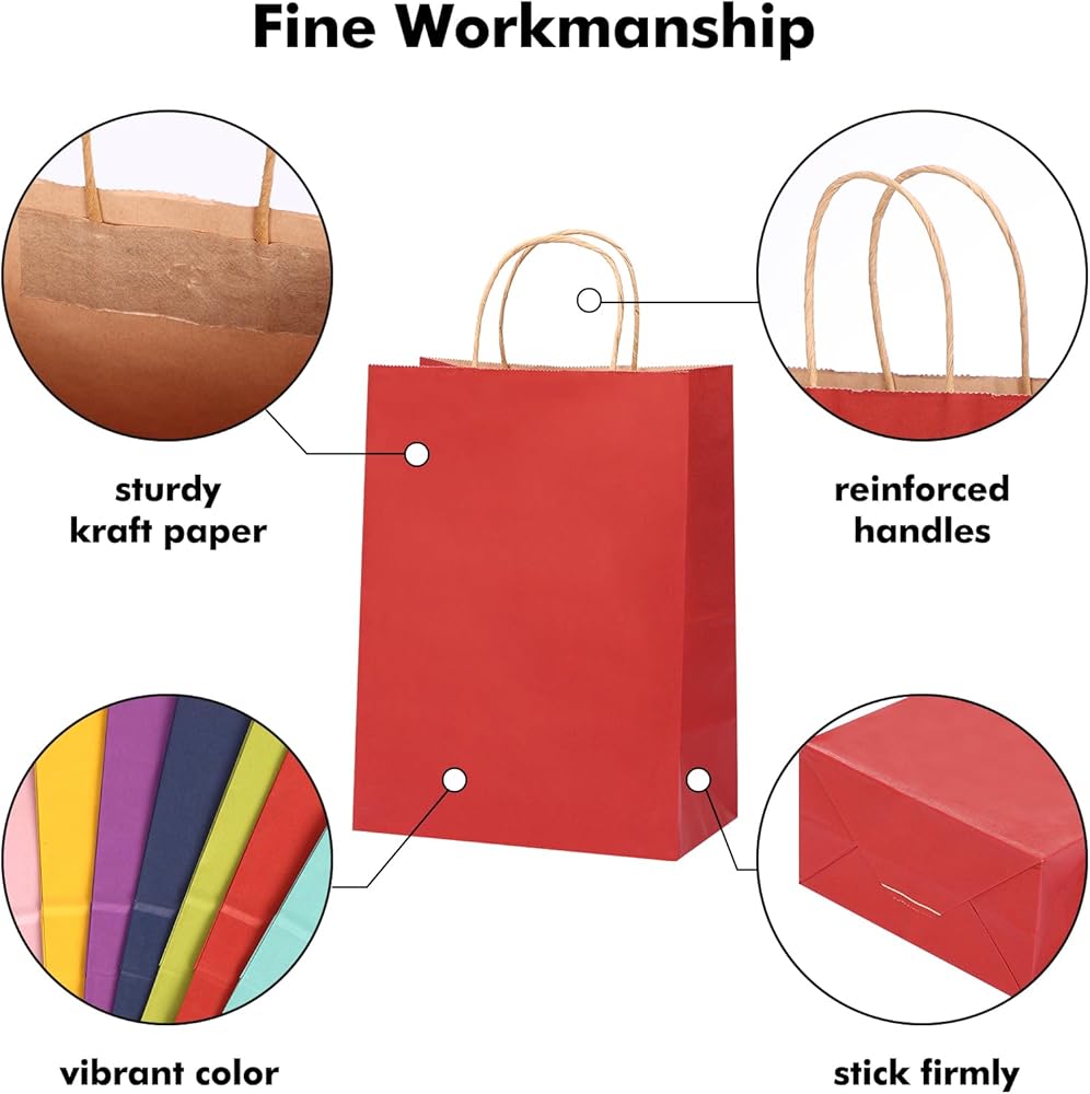 【صناعة جيدة】هذه الحقائب الورقية مصنوعة من ورق الكرافت، قوية وآمنة، ومصممة بمقابض لسهولة الحمل. سطح الحقيبة الورقية مسطح وذو ألوان زاهية، ومناسب للاستخدام بنفسك. استخدم خيالك لتصميم أنماط على الأكياس الورقية، مما يجعل الأكياس الورقية والحفلات ممتعة.