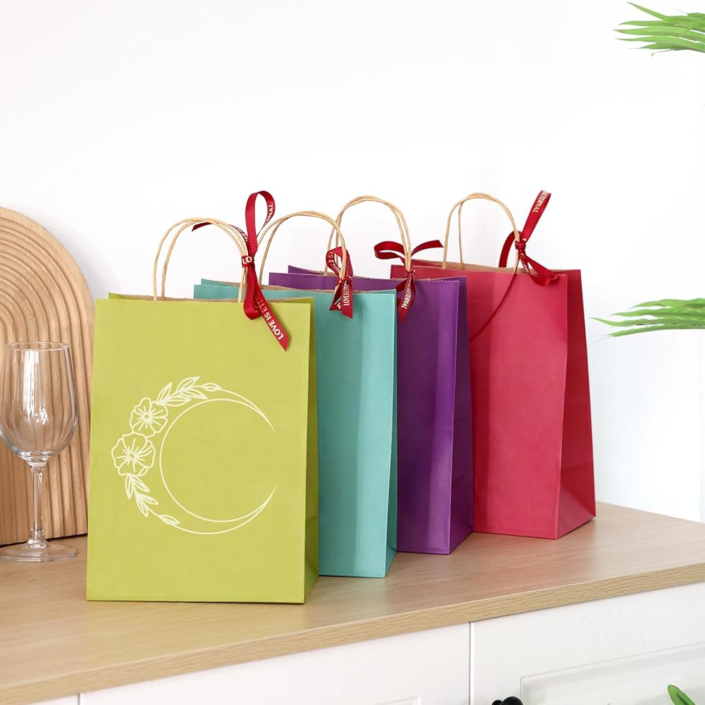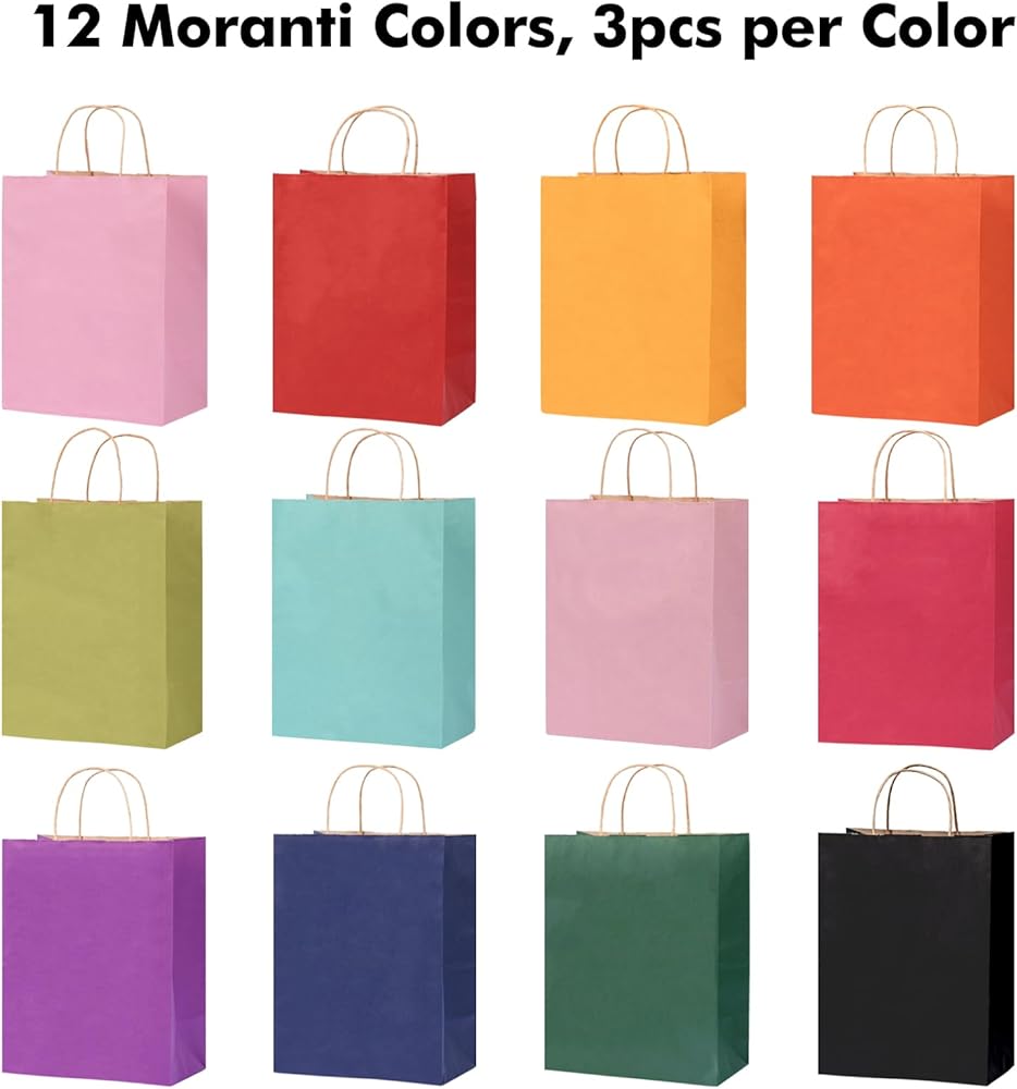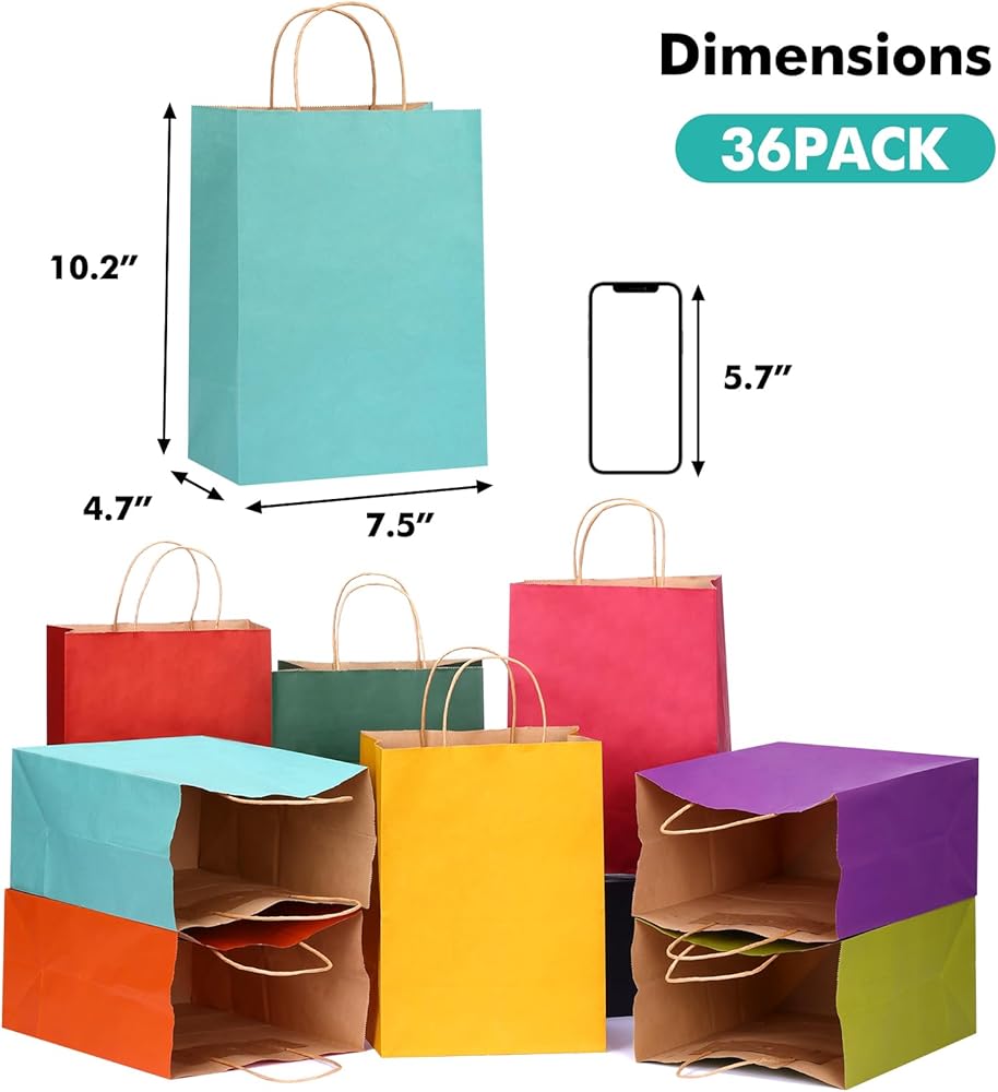 【حقائب هدايا قوس قزح】تتضمن المجموعة 30 كيسًا ورقيًا ملونًا بمقابض و30 منديلًا ملونًا. تأتي أكياس الهدايا ذات الألوان الزاهية هذه في 6 ألوان، مع 5 قطع لكل لون.
