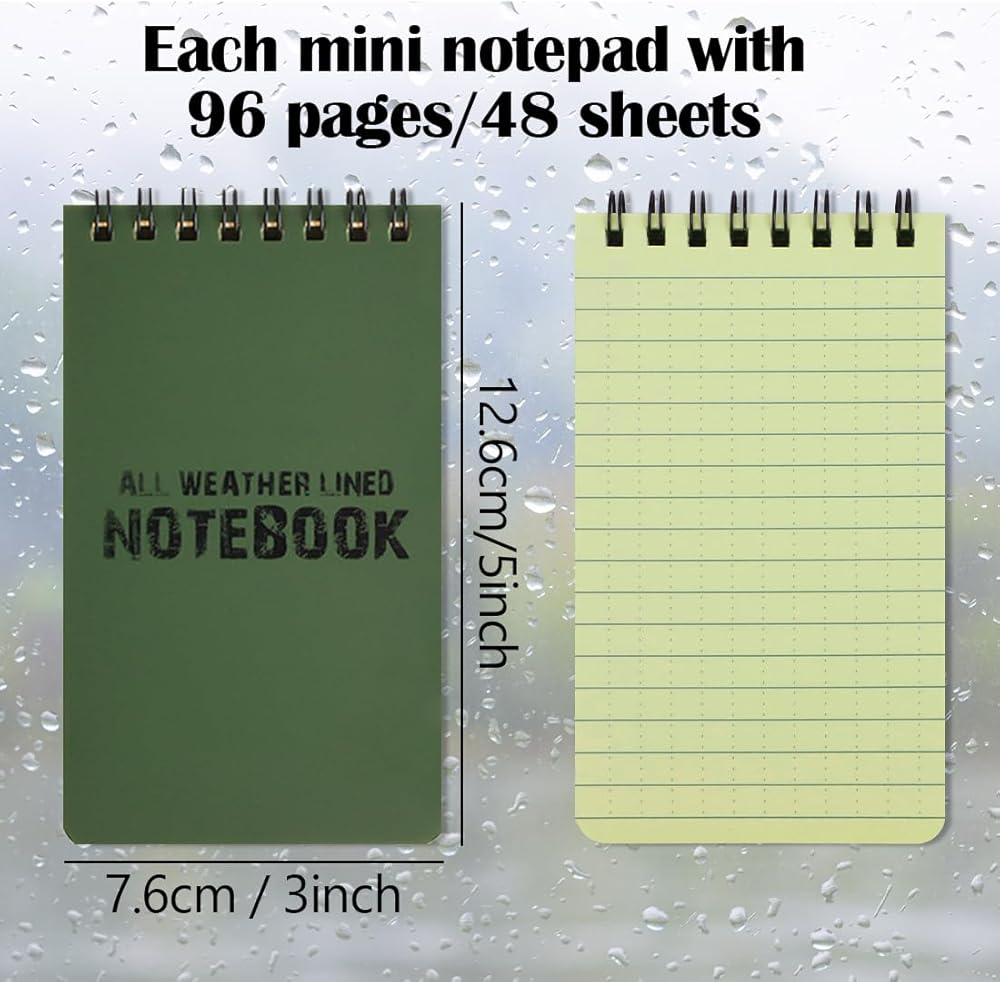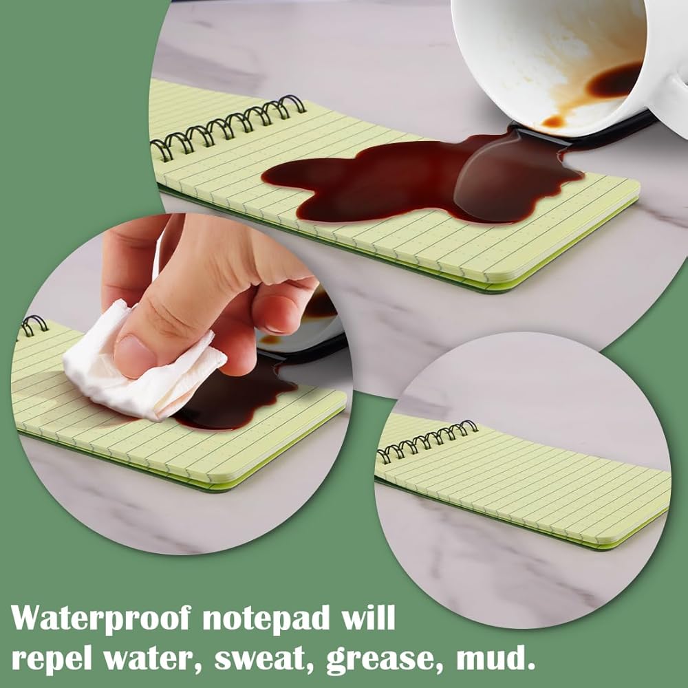 10 قطع من LZYMSZ دفاتر ملاحظات مقاومة للماء، دفاتر ملاحظات حلزونية مقاومة للماء تكتيكية مناسبة لجميع الأحوال الجوية، دفتر ملاحظات جيب مقاس 3 × 5 بوصات، ورق شبكي أخضر لتسجيل الأنشطة الخارجية في المنزل والمدرسة