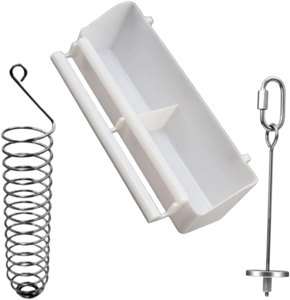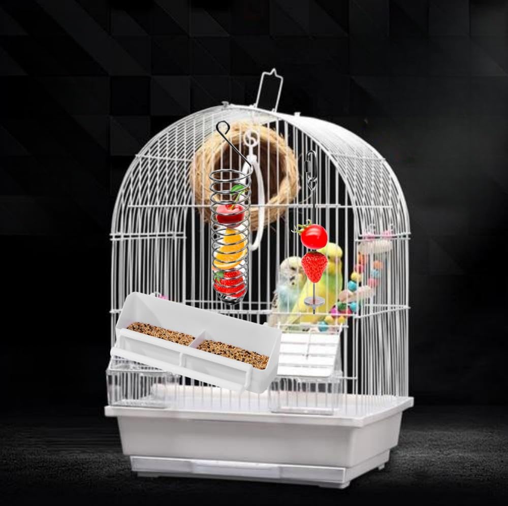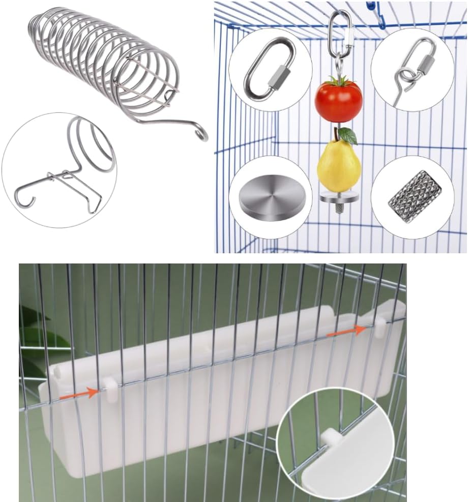 يمكن تعليق حامل طعام الطيور بسهولة من القفص بدون أدوات أخرى، مع خطاف في الأعلى، ويمكن أيضًا استخدامه كلعبة للبحث عن الطعام لإسعاد طائرك.