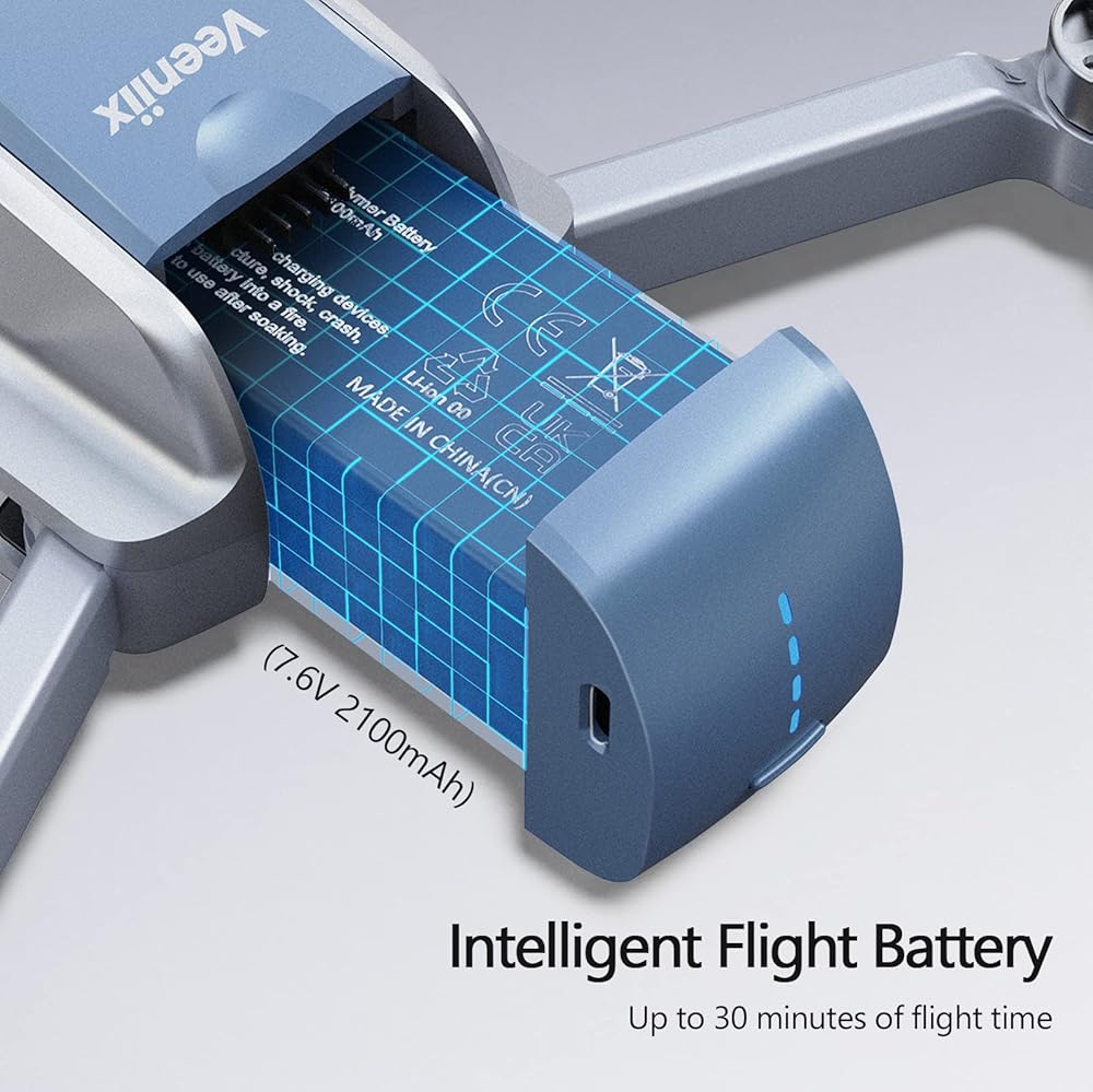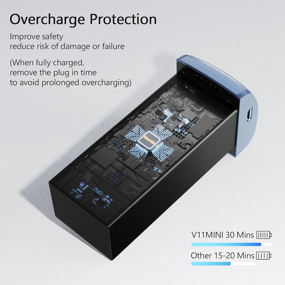 • سعة كبيرة: بسعة كبيرة تبلغ 2100 مللي أمبير في الساعة، توفر بطارية الطيران الذكية Veeniix V11MINI الحد الأقصى لوقت الطيران لمدة 30 دقيقة، 2 لمدة 60 دقيقة.