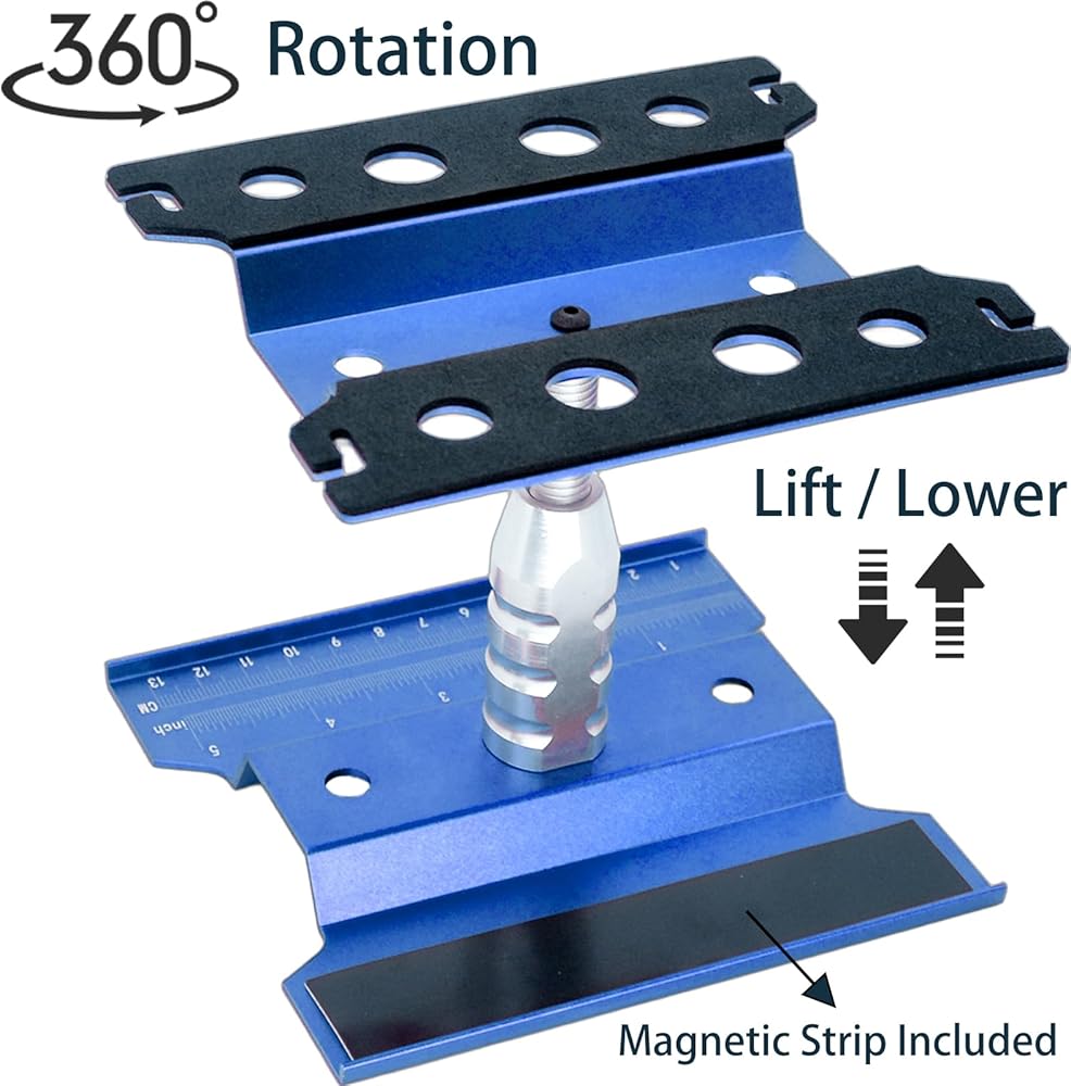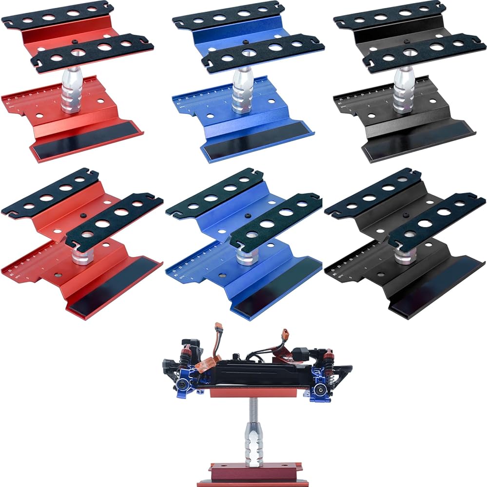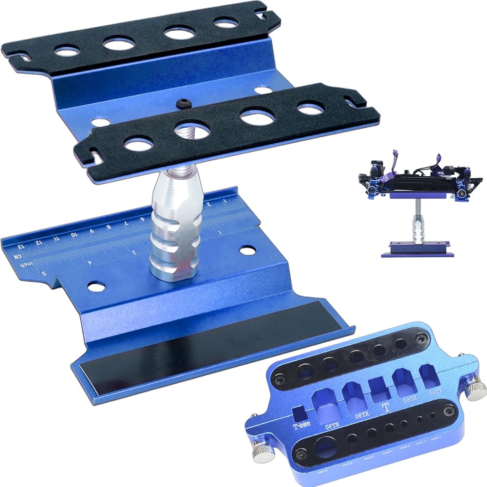 • Aluminum alloy rc car work stand: Come with a magnetic strip, won't worry the small metal parts rolling everywhere. Complimentary non-slip sponge strips that can effectively secure your car while you are at work.