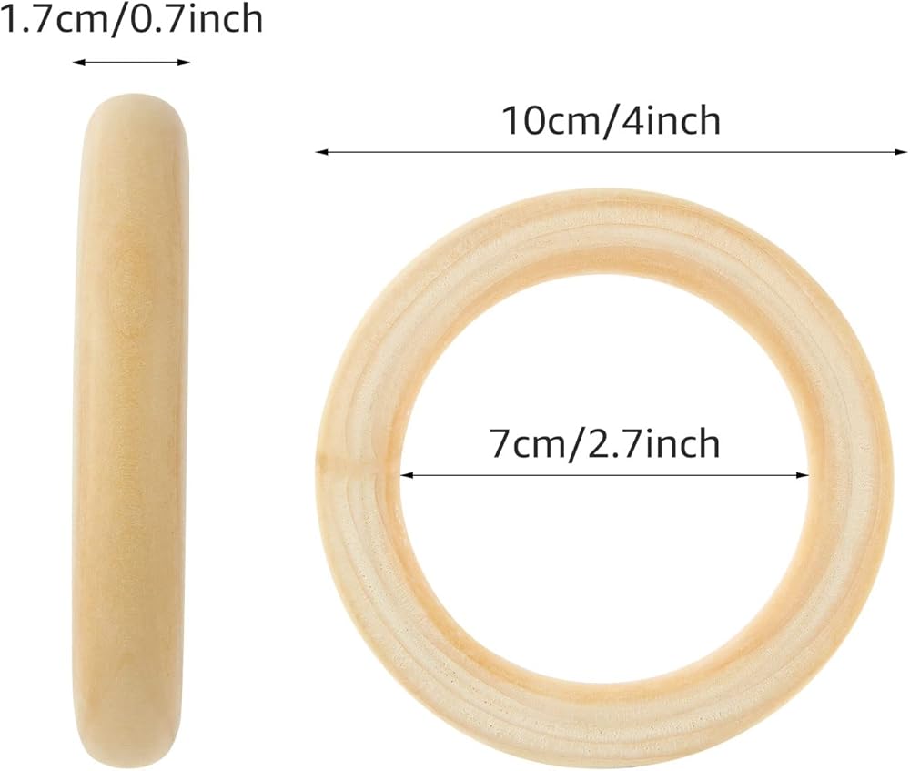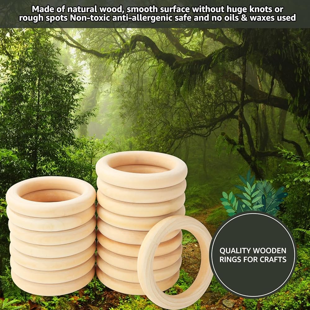 NATURAL QUALITY WOOD: Round wooden rings manufactured from natural wood without huge knots or rough spots, non-toxic, anti-allergenic, safe, and no oils & waxes used. Smooth surface providing you comfortable touch feeling.