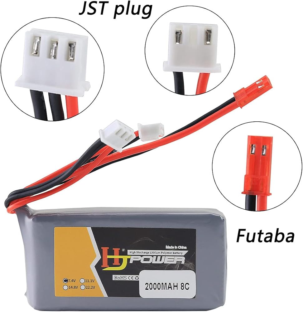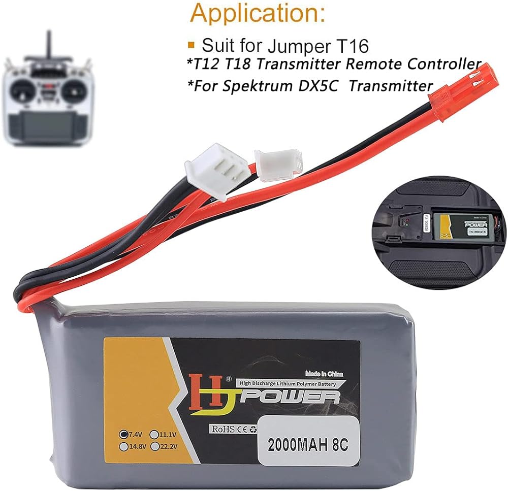 - 1 قطعة 2000 مللي أمبير بطارية ليبو قابلة للشحن 7.4 فولت 8C JST-PH2.0 موصل فوتابا ل Spektrum DX5C الارسال الطائر T16 برو T12 T18 الارسال تحكم عن بعد